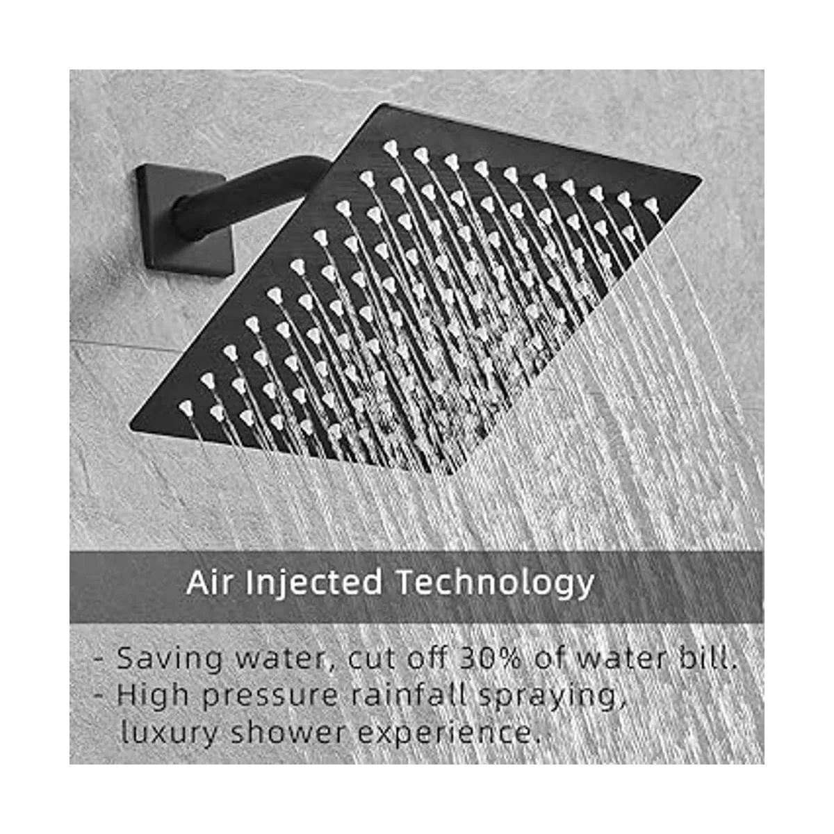 Cabezal de ducha grande de 8 pulgadas: disfruta de la experiencia de un lujoso flujo de agua recto y ducha de lluvia empapada en una ducha superior. La tecnología de energía de aire ofrece una potente ducha de lluvia constante incluso bajo baja presión de agua.