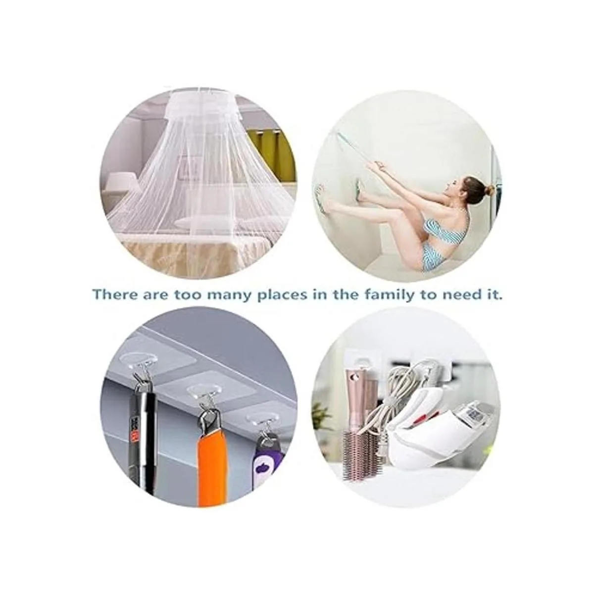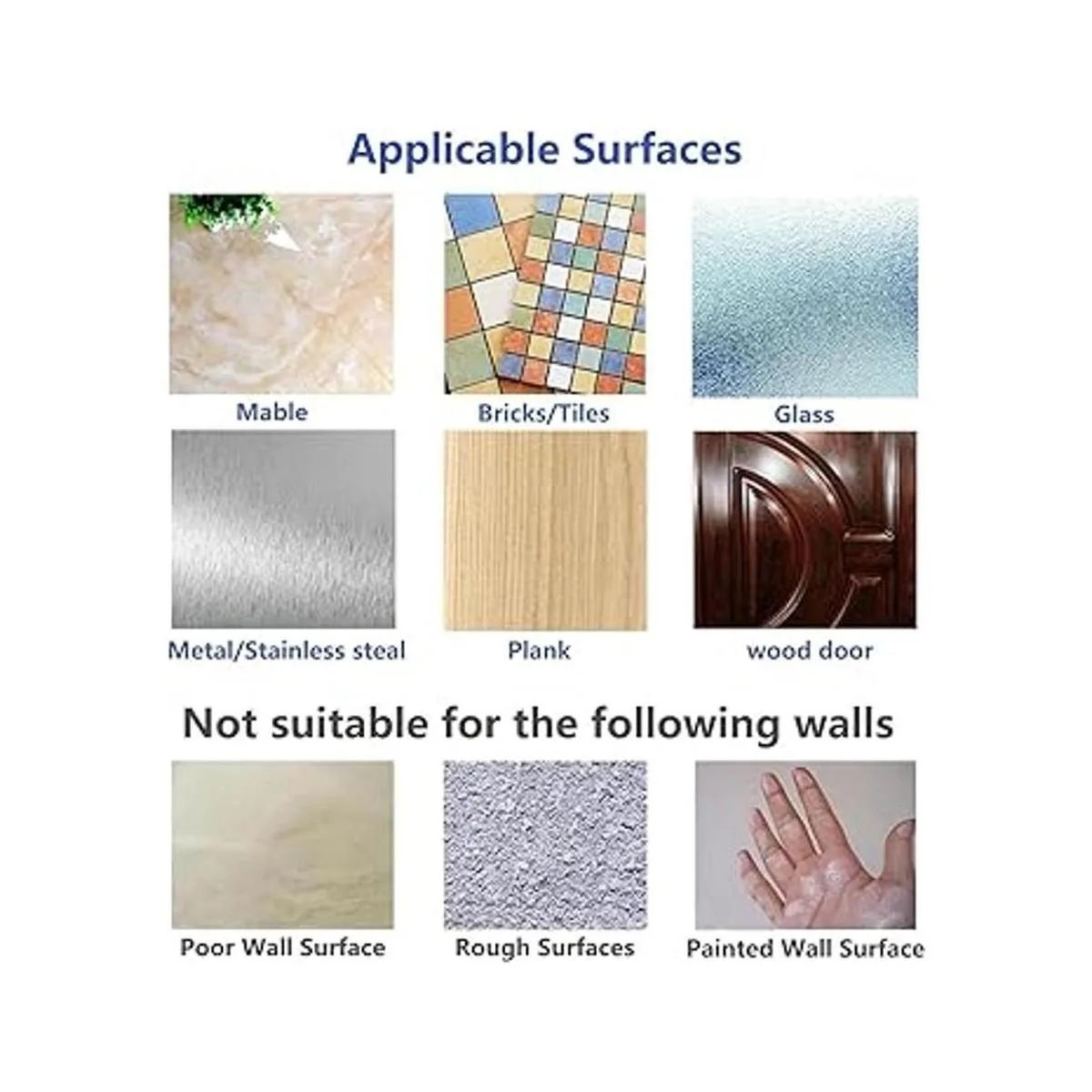 Aplicación amplia Ampliamente usado en una variedad de superficies, como madera, azulejos, cerámica, metal, superficie plástica y más por favor presta atención a que hay límites en las paredes pintadas, especialmente ideal para colgar accesorios de ducha o baño en un cuarto de baño o utensilios de cocina y herramientas en una pared posterior de azulejos.