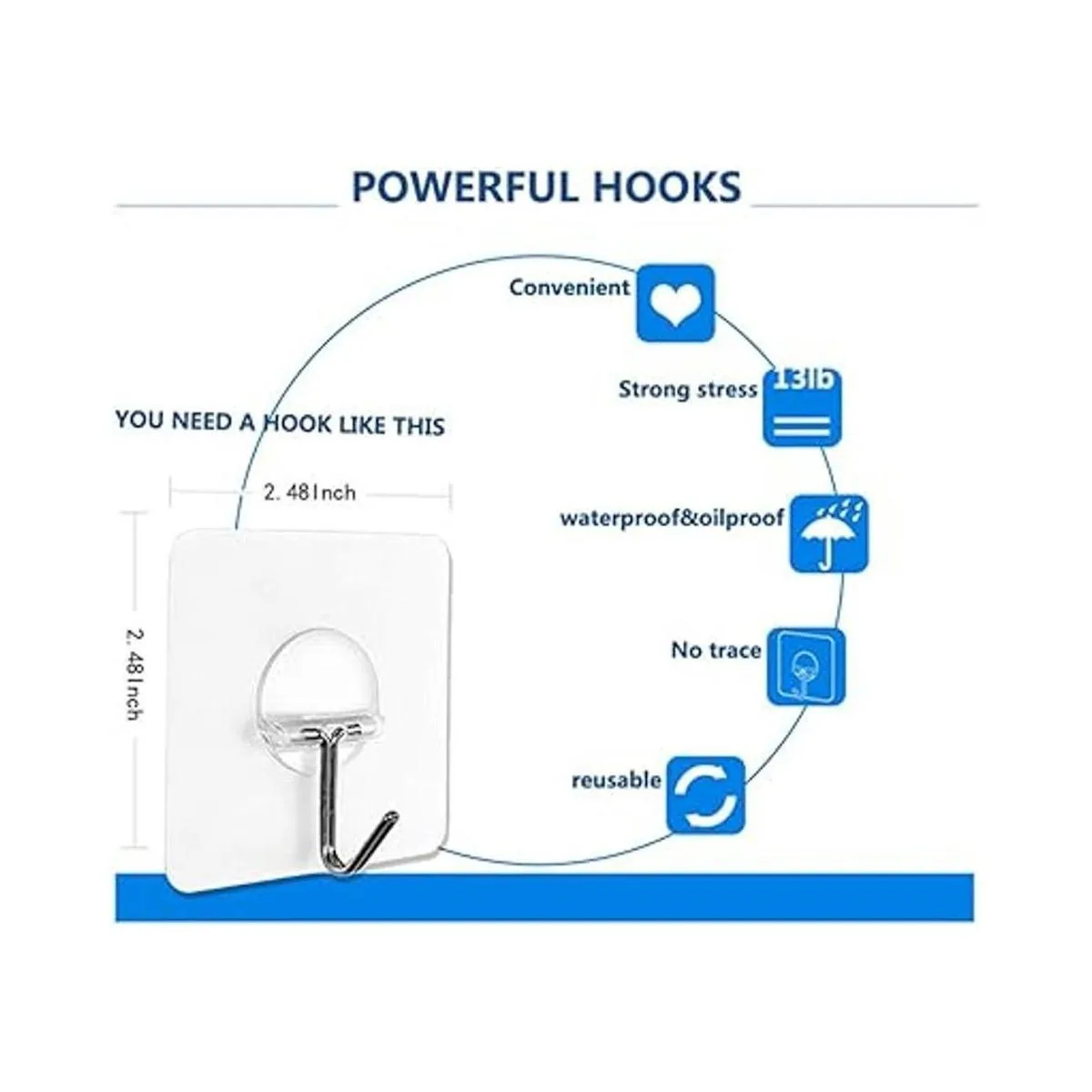 JINSHUNFA Ganchos de pared transparentes para 13 libras (máximo) reutilizables sin costuras, resistentes al agua y al aceite, resistentes ganchos autoadhesivos para cocina, baño, 8 unidades