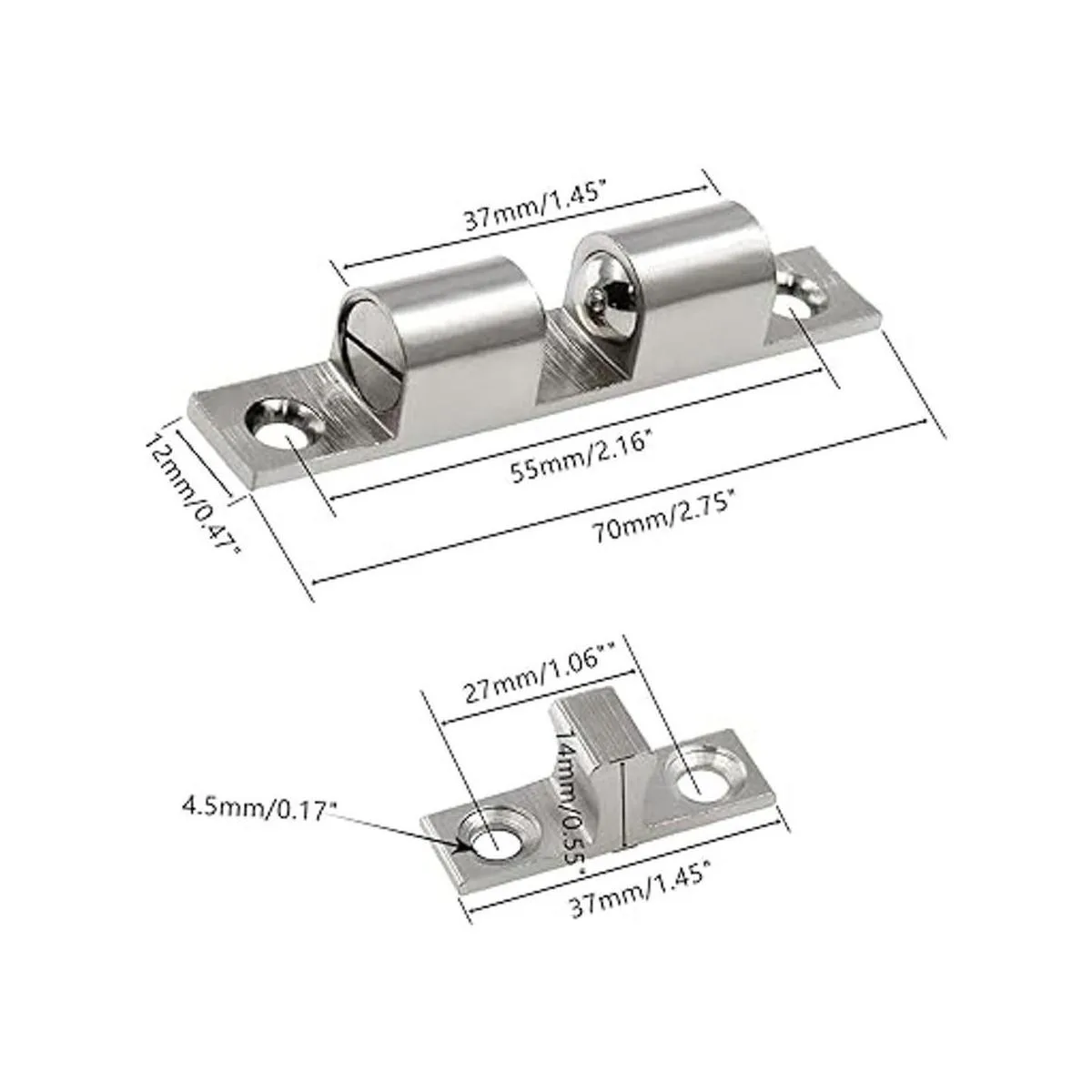 Jiozermi 5 piezas de 2.75 70 mm doble bola tensión rodillo de retención, latón macizo con tornillos para armario, puerta de armario, armario y muebles, cromado