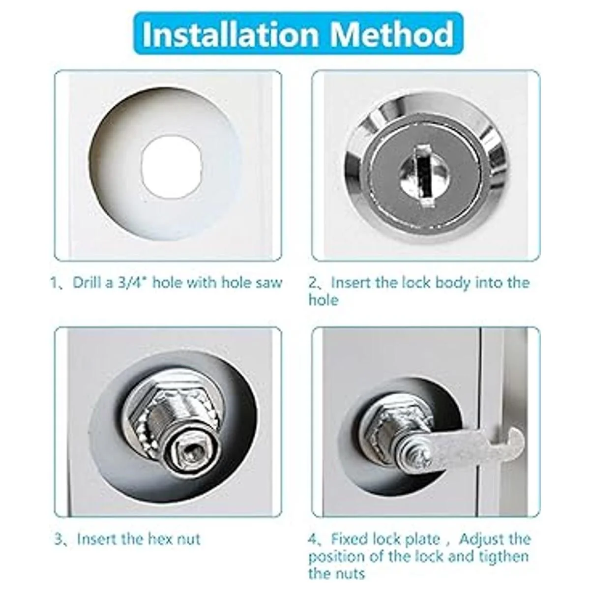 Característica de la cerradura : los cierres de armario tienen una llave igual que cada llave encajará con cada candado que compres. No tiene llave y se abre con un giro de 90 grados, lo que te permite quitar la llave de la posición bloqueada y desbloqueada.
