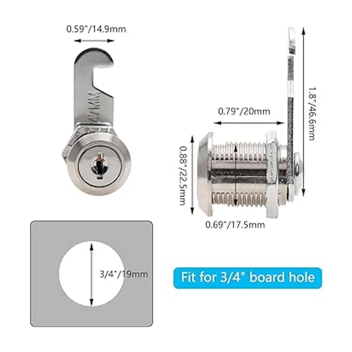 Tamaño del producto : la cerradura de cajón es de tamaño estándar con 0.689 in de diámetro. Puede adaptarse al grosor del panel de hasta 0.984 in.