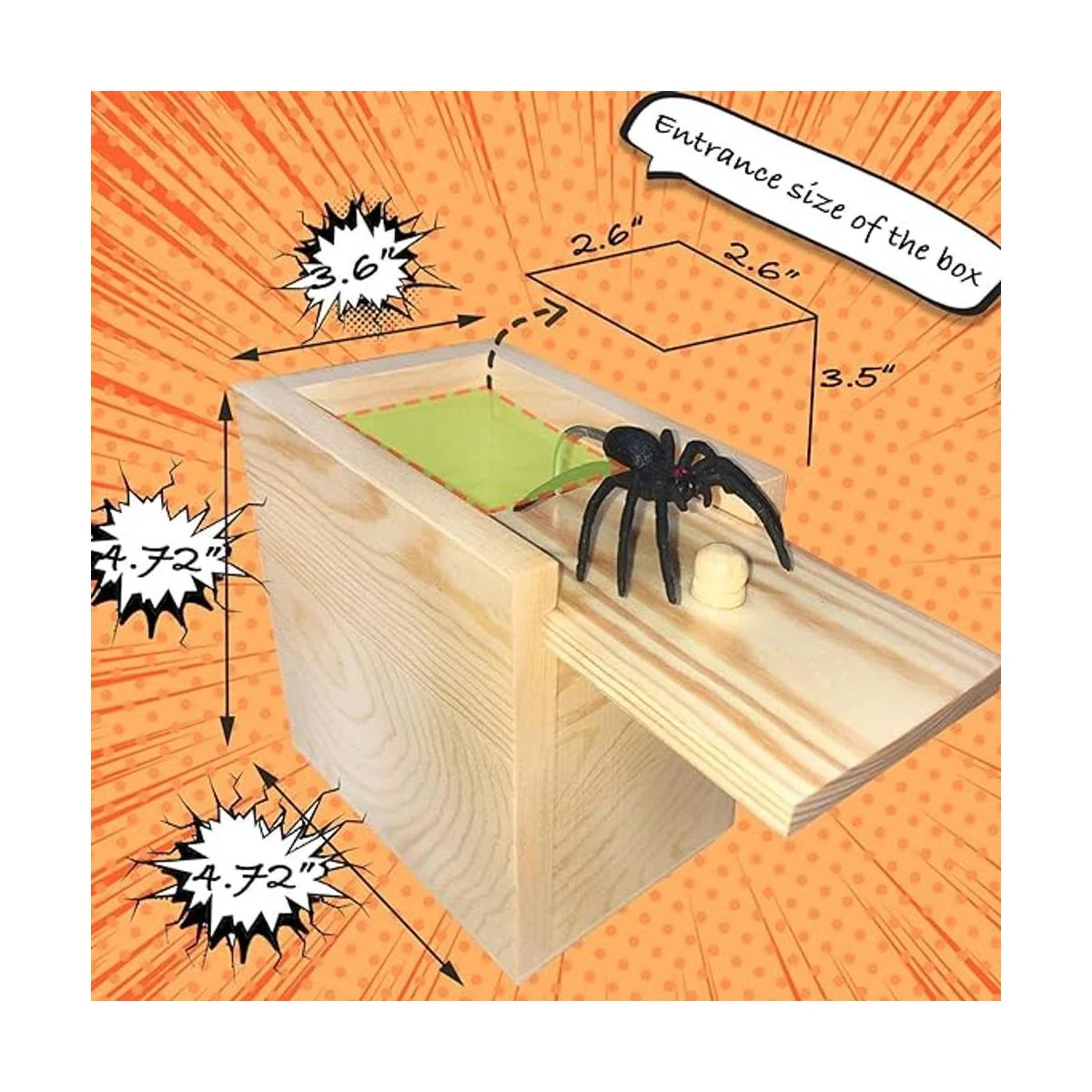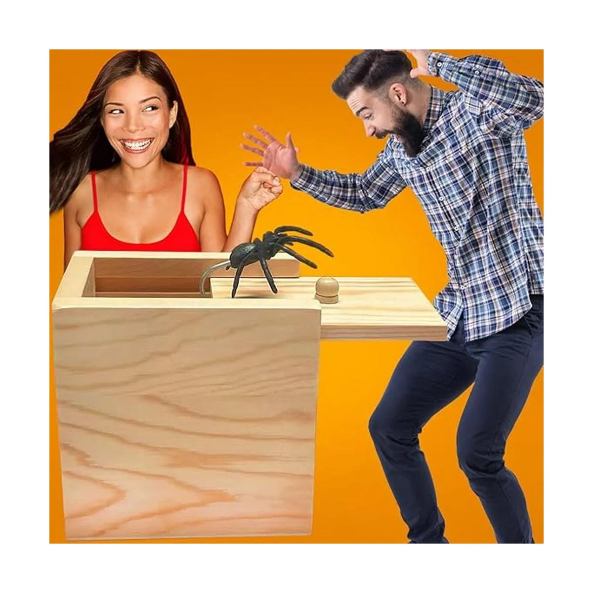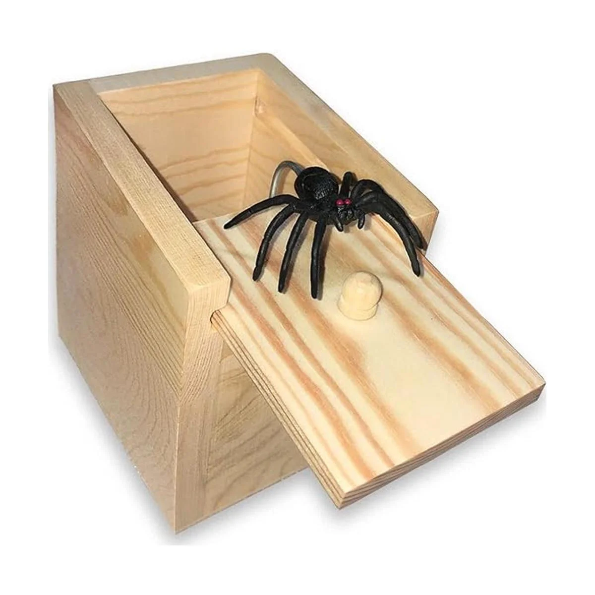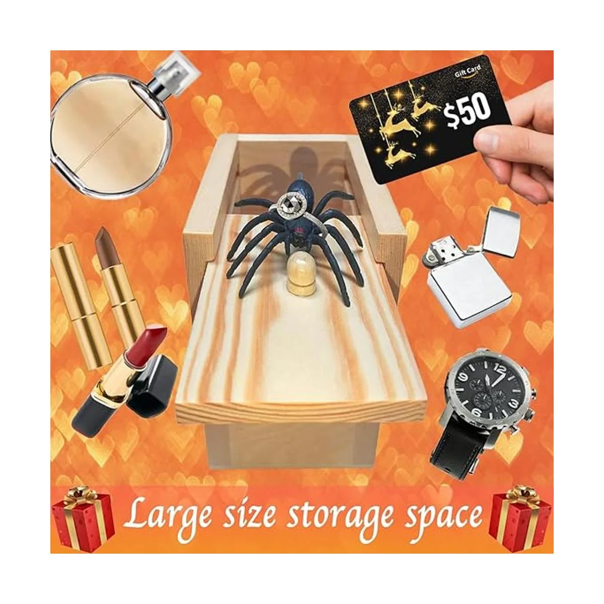 Jishi Caja de broma de araña, regalo divertido de broma, caja de regalo sorpresa de madera grande para dinero en efectivo, regalos de tarjeta de regalo, divertida caja de trucos divertida, broma de asusto, juguetes prácticos de broma, regalos de elefante blanco, relleno de calcetines
