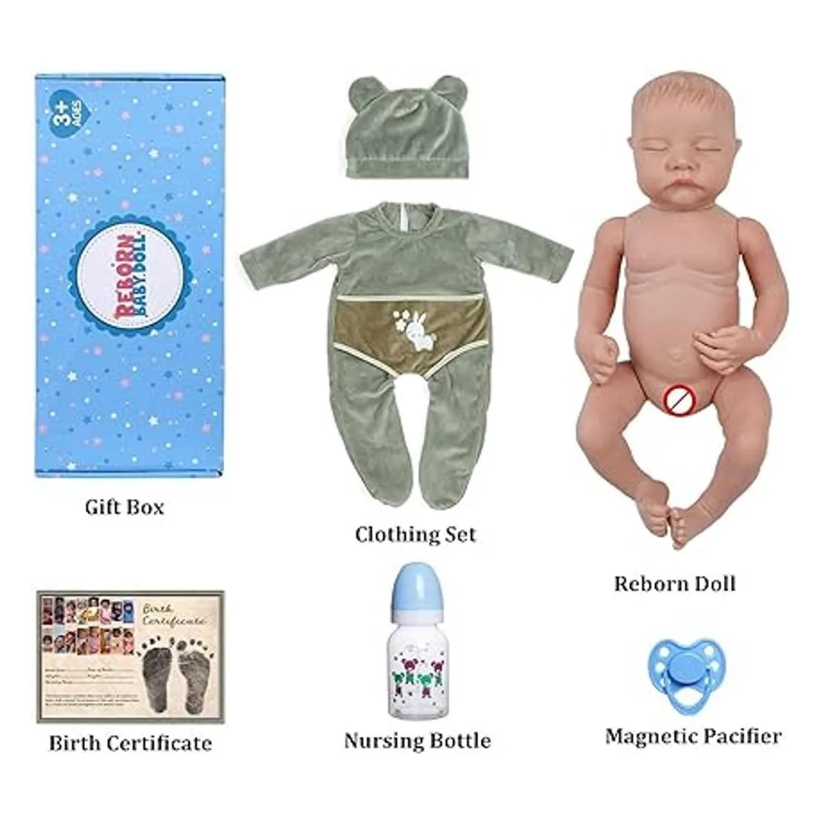 Take Him Home Now: This baby doll comes to you with 1 x Baby Doll, 1 x Nursing Bottle, 1 x Magnetic Pacifier, 1 x Birth Card, 1 x Clothing set and 1 x Gift Box.