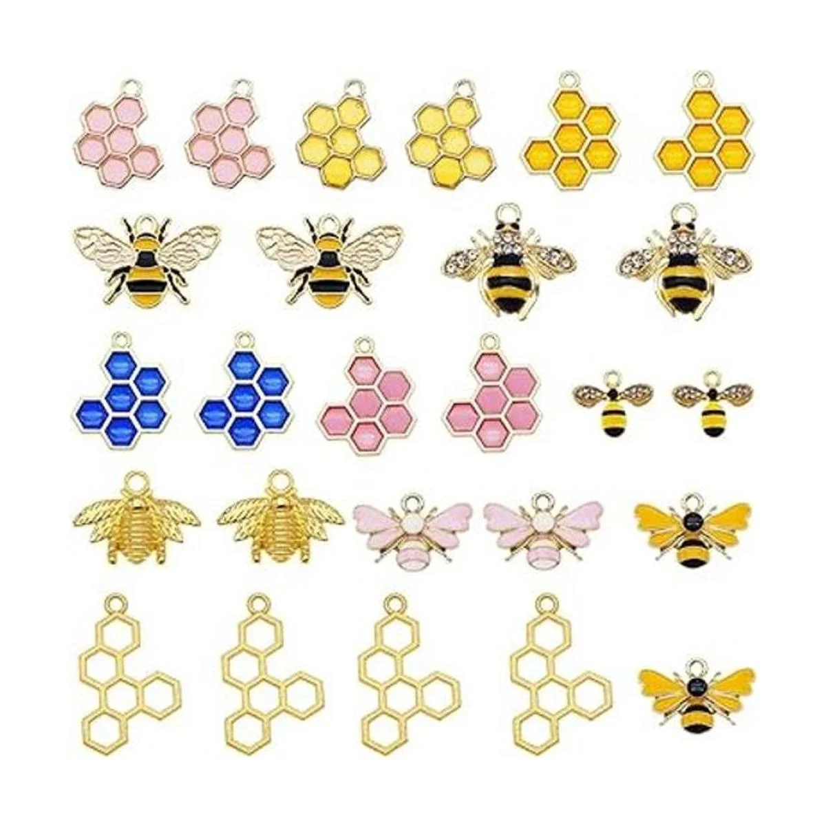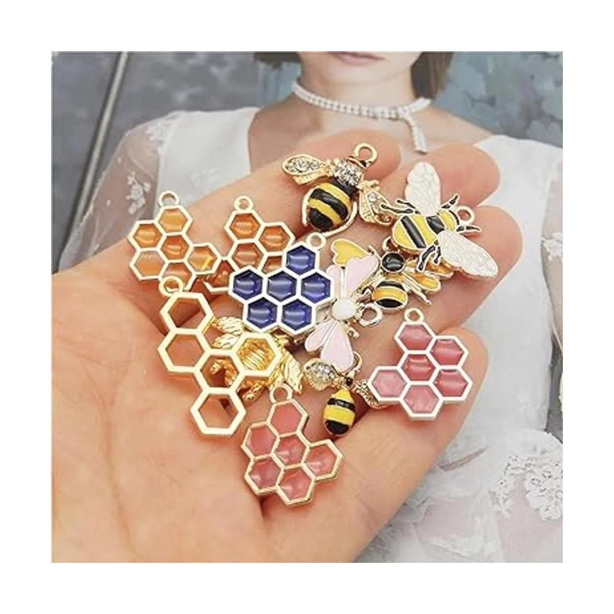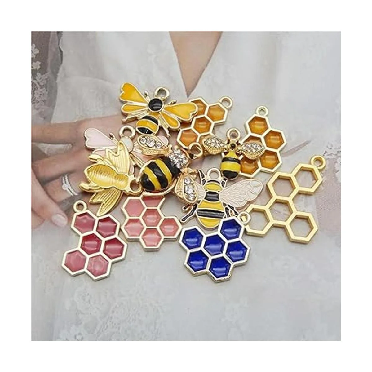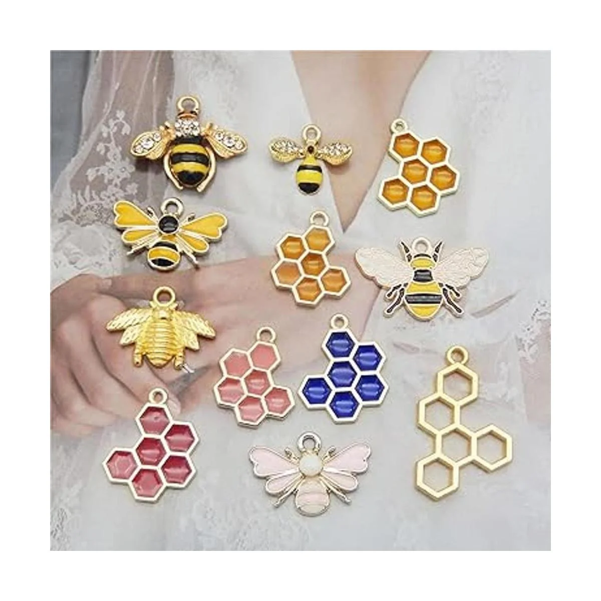 JJGQAZ 24 piezas 12 pares aleación esmalte abeja encantos diamantes de imitación joyería fabricación abeja abeja colgantes colgantes para collar pulsera pendientes llavero DIY fabricación suministros
