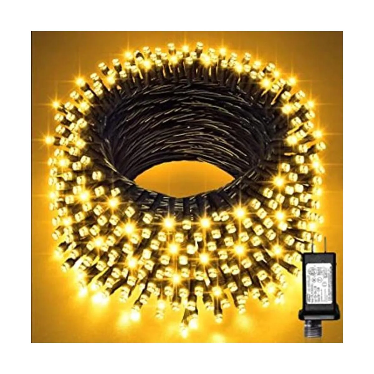 JMEXSUSS 200 luces LED de Navidad para interiores y exteriores, luces blancas cálidas para árbol de Navidad, alambre verde, 8 modos de enchufar impermeable, luces parpadeantes, para habitación, boda y decoración de árbol para festividades