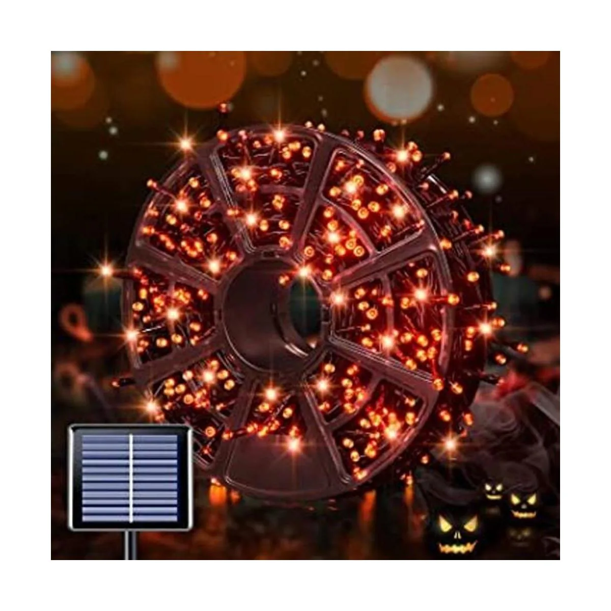 JMEXSUSS 600 luces solares LED naranjas, cadena de luces solares de 207 pies, 8 modos de luces solares naranjas de Halloween al aire libre, impermeable, para decoraciones de Halloween, fiestas, arbustos de árbol de Navidad, Xams