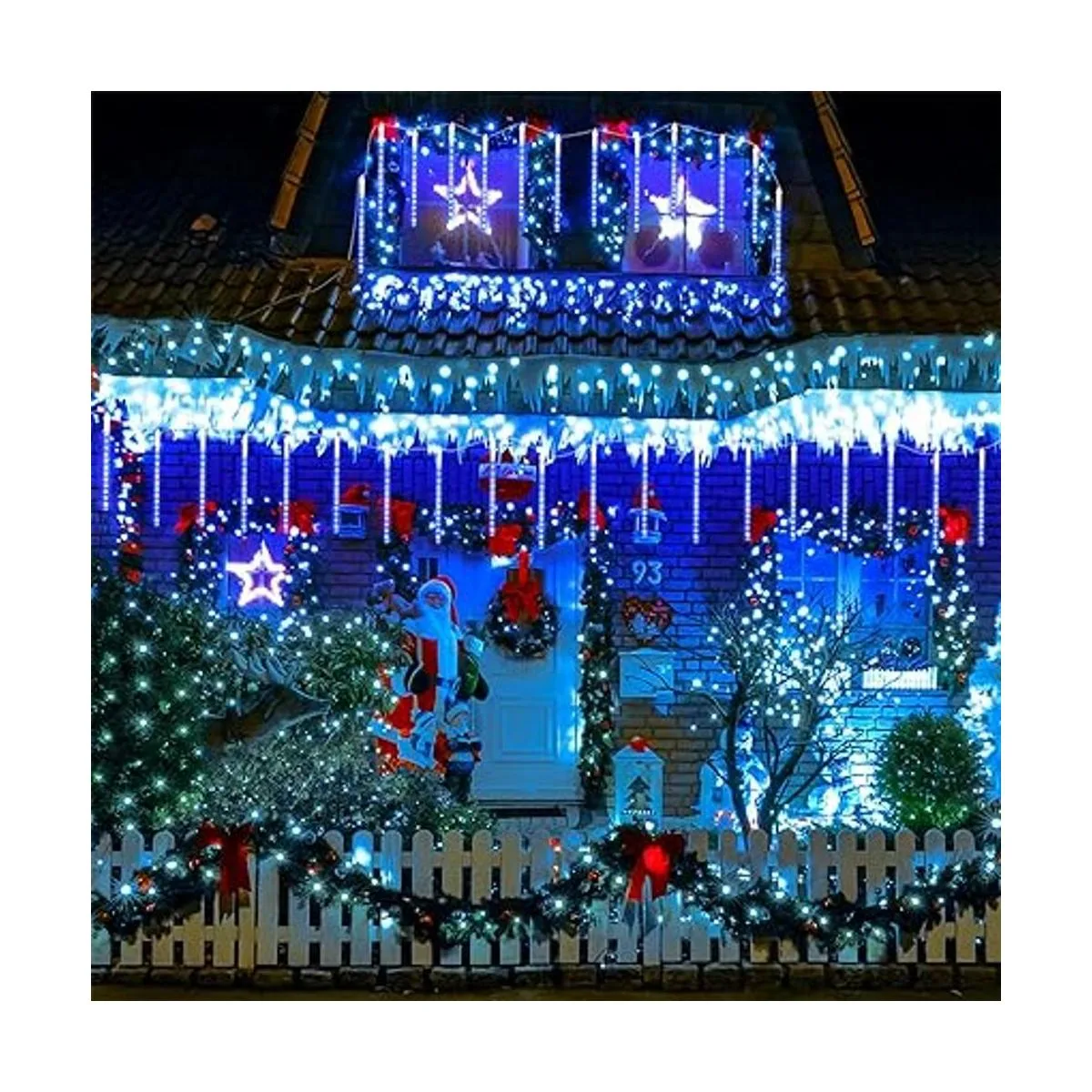 Fácil de instalar y extensible Luces de lluvia con forma de gota de lluvia. Luces LED de lluvia de meteorito, diseñadas con enchufe trasero que puede conectar más de 2 luces juntas usando un panel solar para adaptarse a ocasiones más amplias. Si toda la luz de meteorito con 8 tubos no se puede iluminar cuando conectas muchos juegos, comprueba que los conectores hembra y macho están conectados correctamente. Muy fácil de colocar y te encontrarás mirando mientras empiezan sus efectos de estrella fugace.