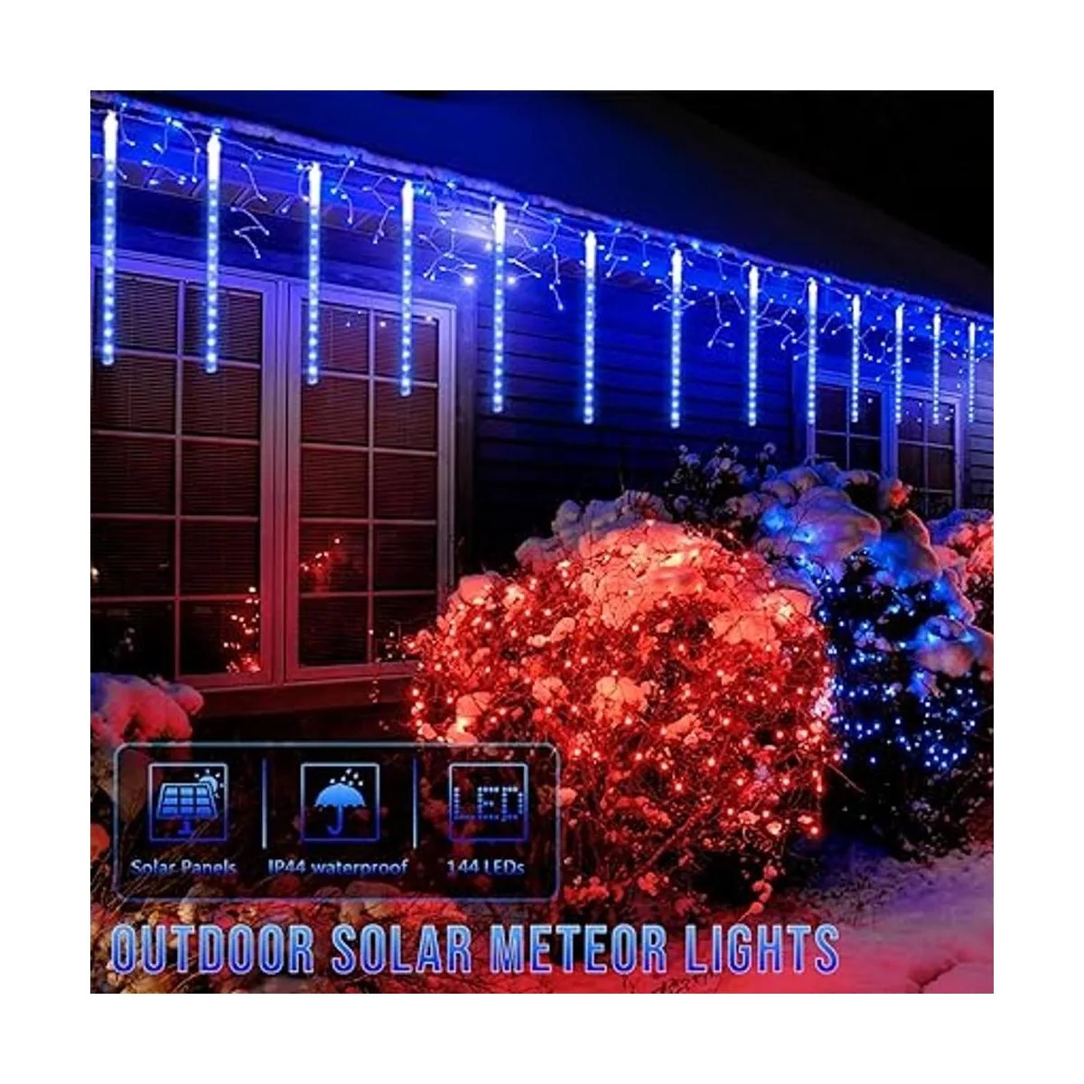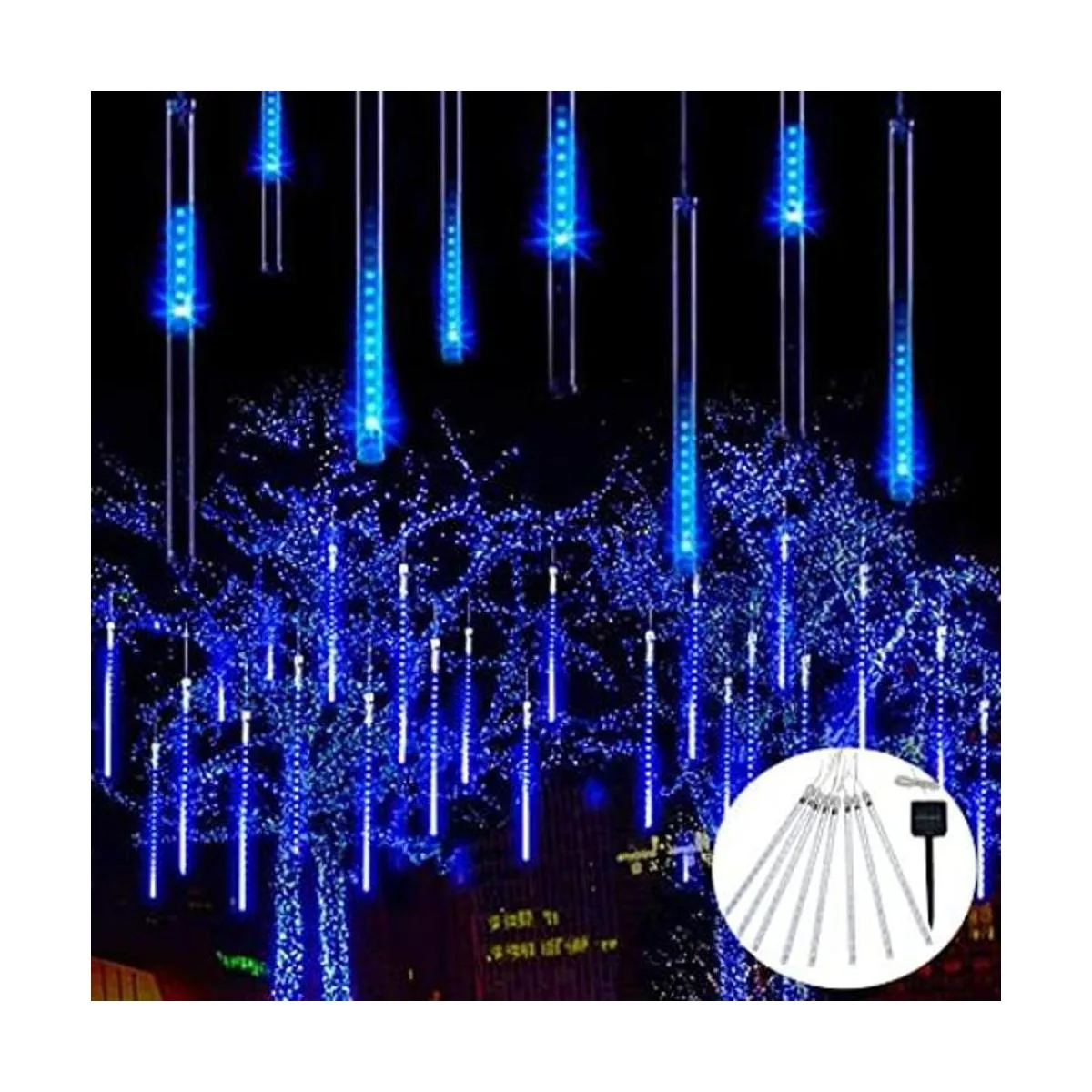 JMEXSUSS Meteor Luces de lluvia para regadera con energía solar, luces de regadera de meteorito, 11.8 in, 8 tubos, 144 LED, luz de meteorito, luz de lluvia