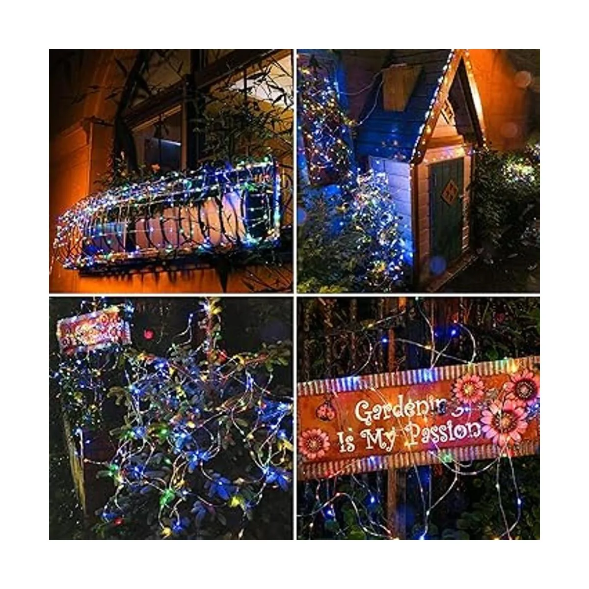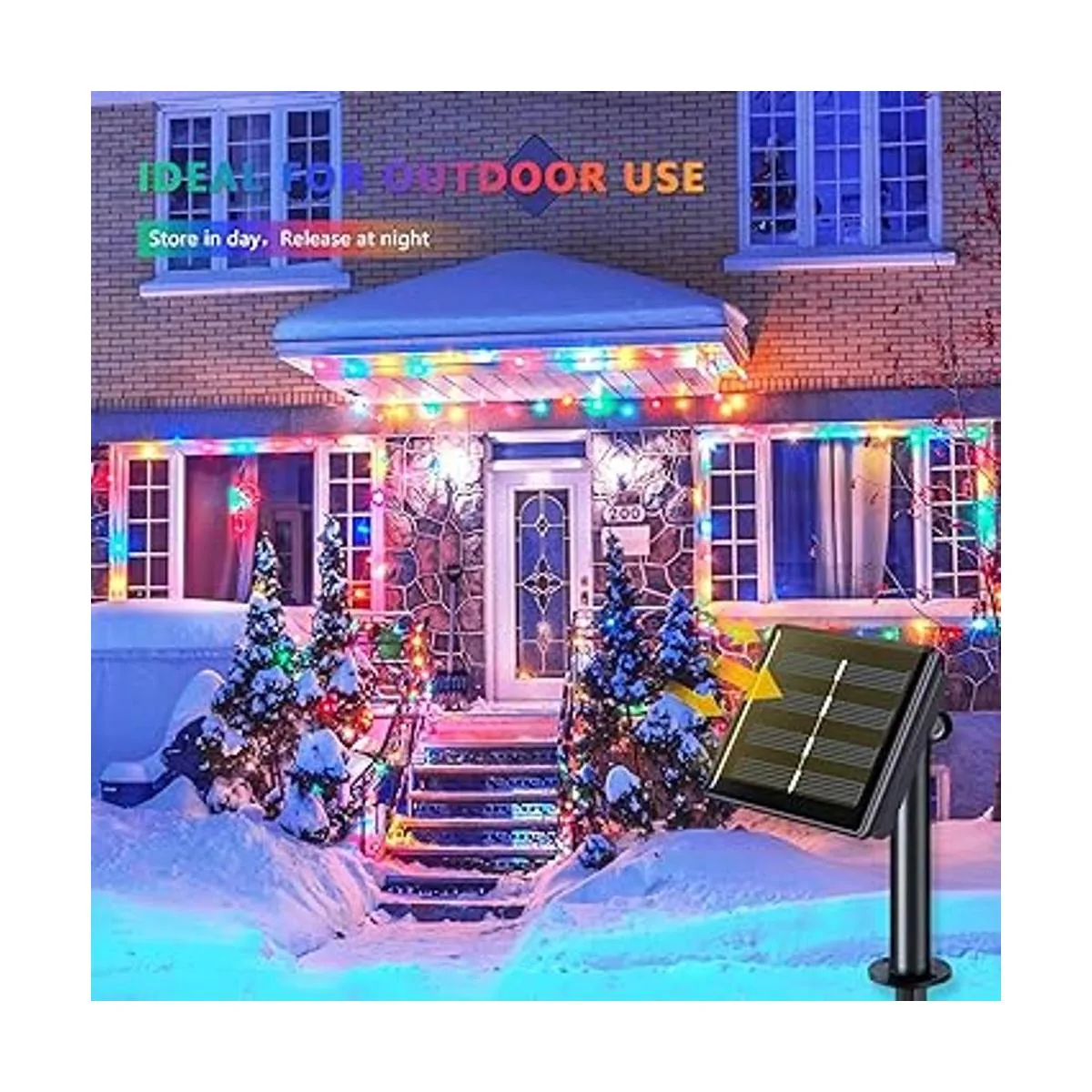 Paquete de 2 luces solares multicolores: 100 LED brillantes en alambre plateado de 33 pies, ideal para decorar tu árbol de Navidad, también adecuado para decorar tus jardines, patio, arbusto, porche, patio o tienda, ilumina tu temporada festiva. En la oscuridad, el alambre se desvanece a invisible, dejando solo el brillo colorido, crea un ambiente navideño.