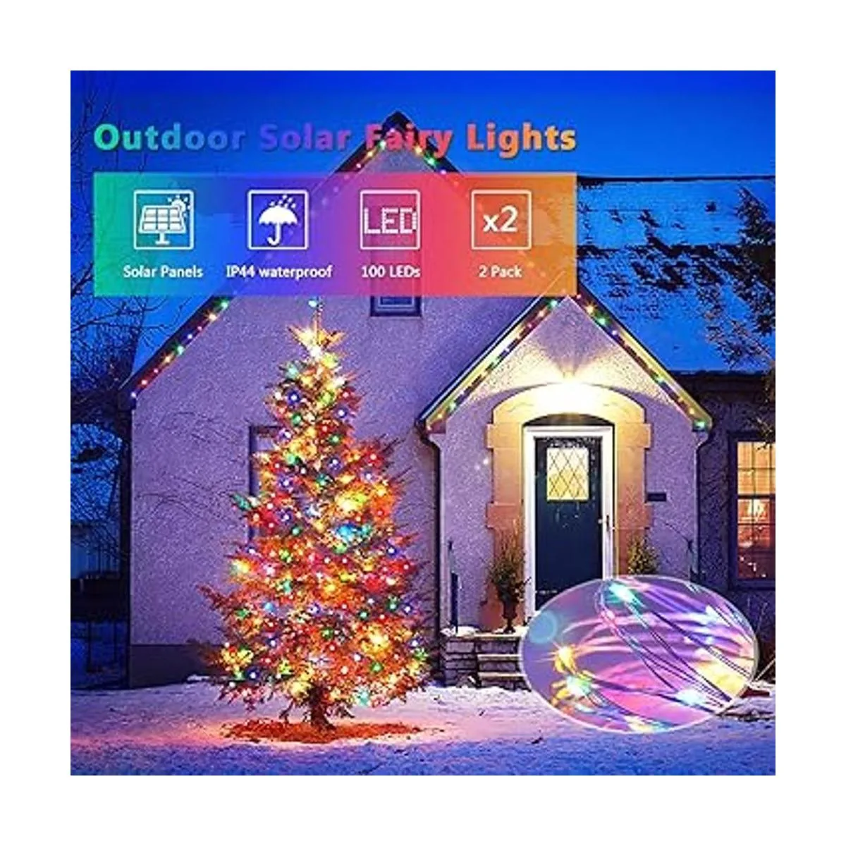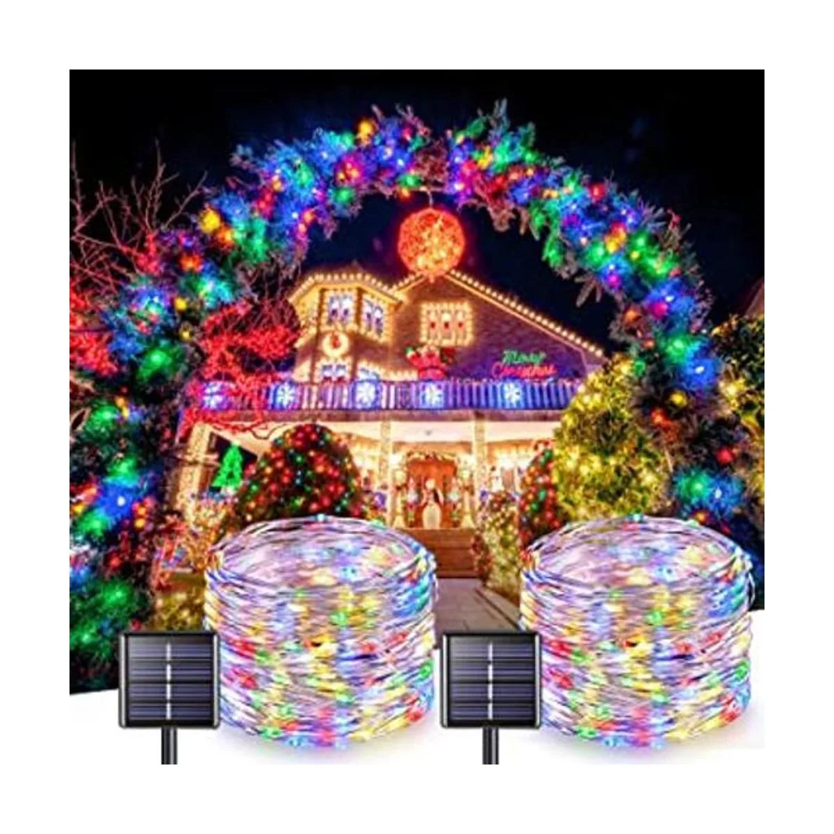 JMEXSUSS Paquete de 2 luces solares de Navidad impermeables para exteriores, 33 pies, 100 luces LED solares de 8 modos de alambre de cobre multicolor, mini luces solares de hadas para Navidad, patio, boda, decoración de fiesta