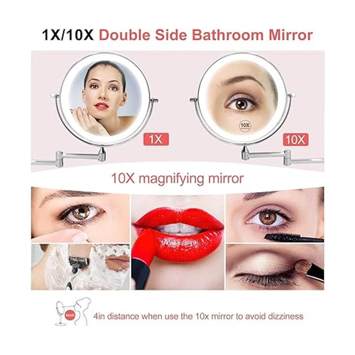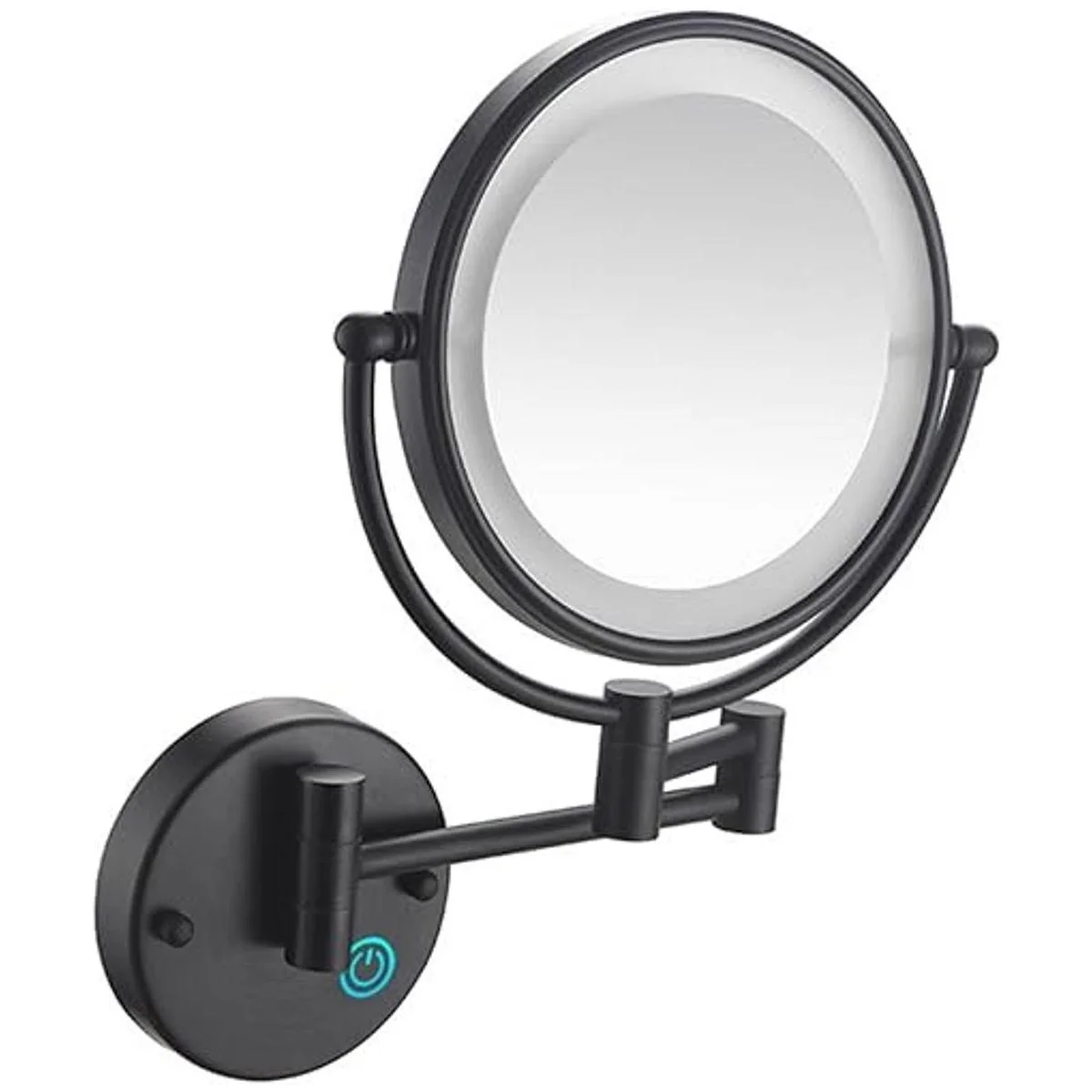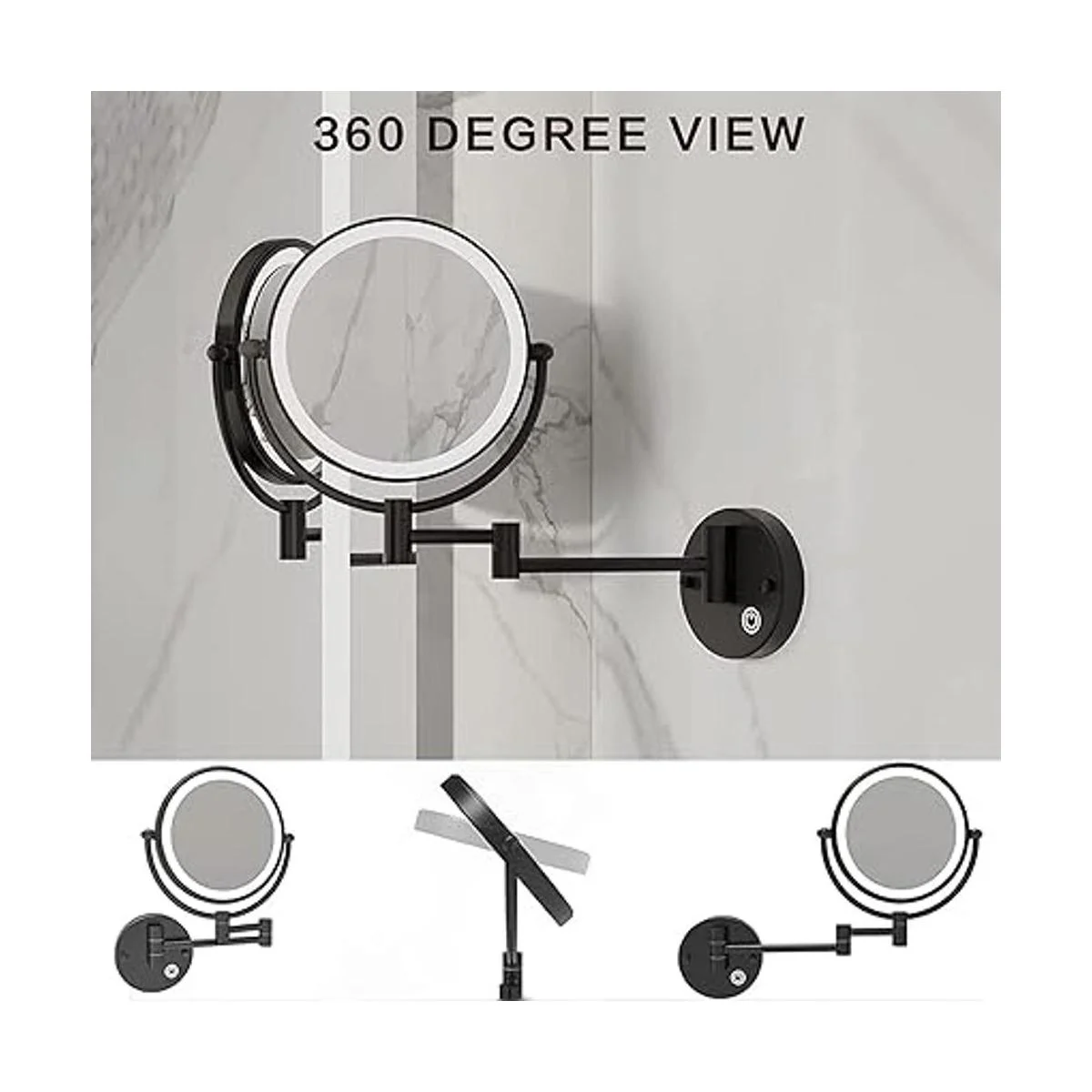 JMFHCD Espejo de maquillaje LED con luces y aumento de 10 aumentos, redondo, de doble cara, con brazo extensible giratorio de 360, color negro, cable duro