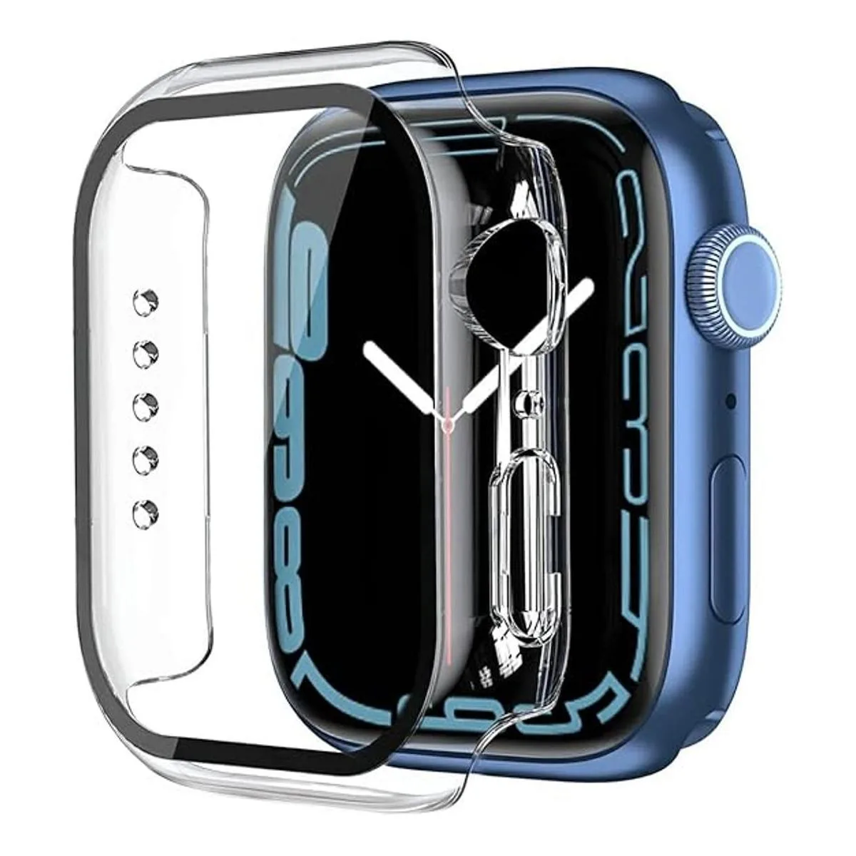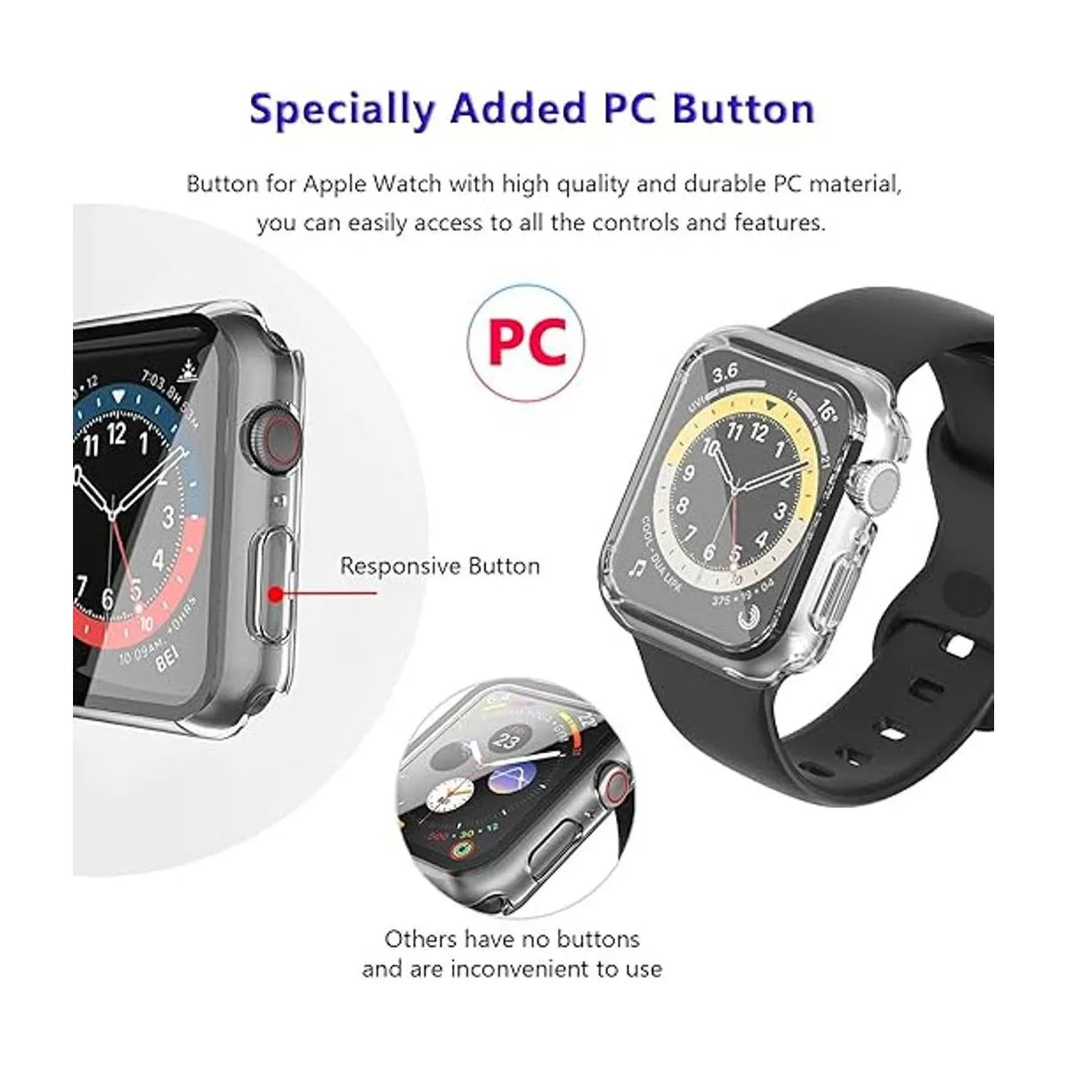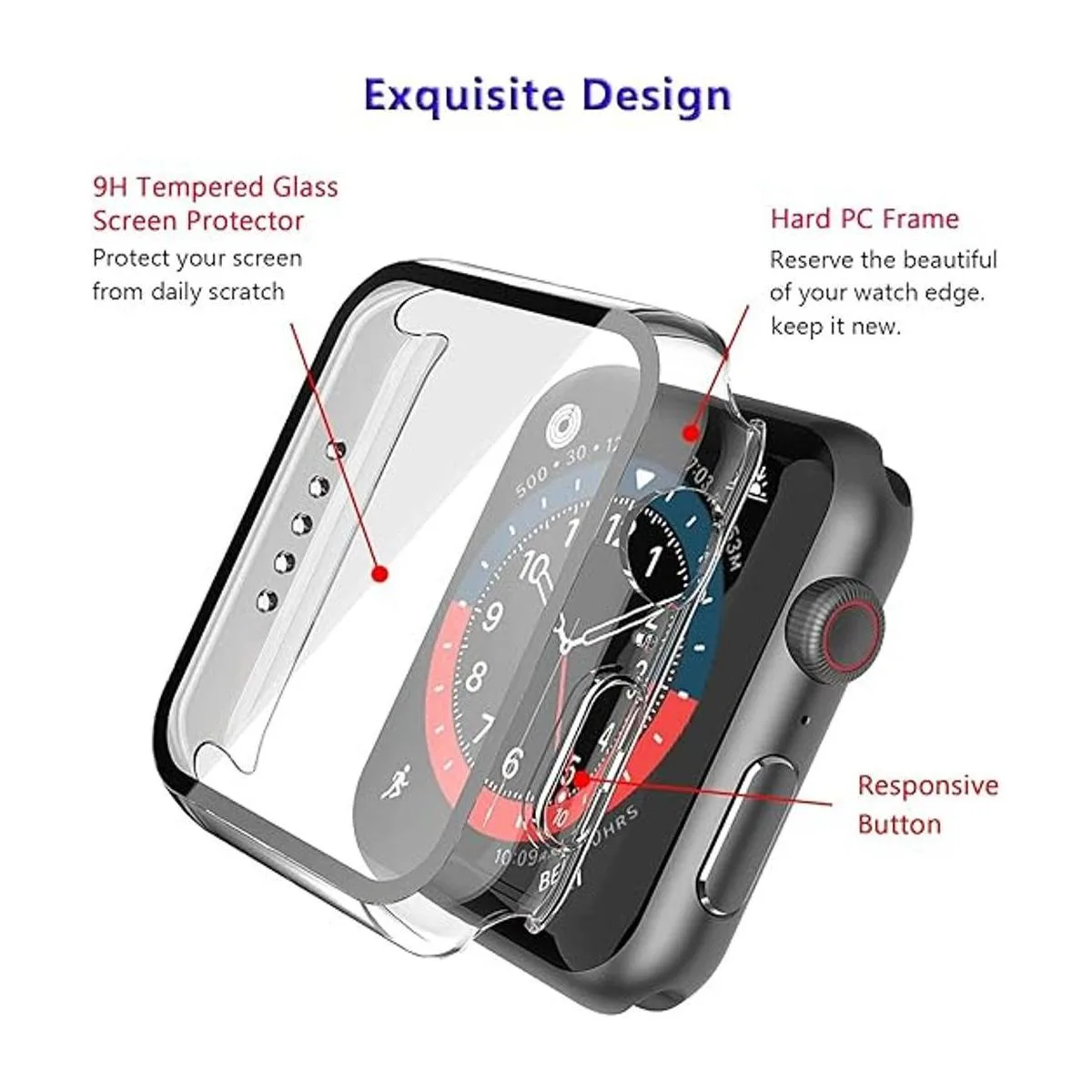 A prueba de golpes y arañazos: hecho de material de policarbonato duro resistente a los arañazos y protector de pantalla de vidrio templado de dureza 9H integrado. Esta funda cubre la parte delantera completa y los bordes curvos del reloj, ofreciendo 360 grados completamente protege tu Apple Watch de arañazos, golpes y caídas accidentales. La resistente pantalla de vidrio templado HD protege tu Apple Watch del polvo, las huellas dactilares y los arañazos.