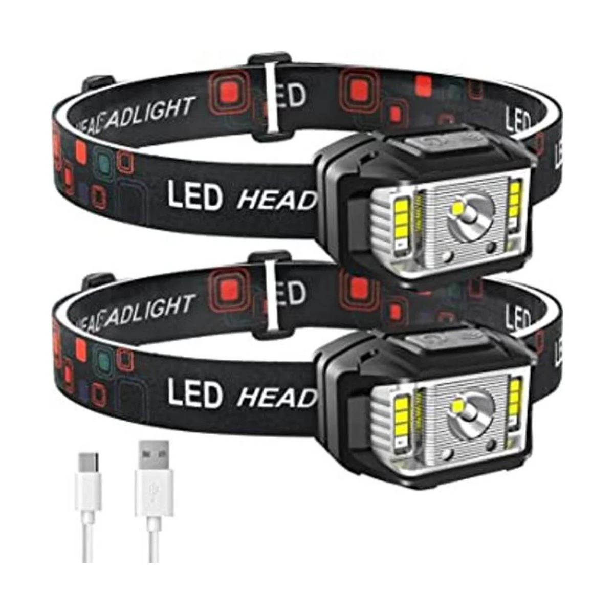 JNDFOFC Linterna frontal recargable, 1200 lúmenes, con sensor de movimiento súper brillante, linterna de cabeza LED, paquete de 2 faros delanteros impermeables con luz blanca roja, 14 modos de luces principales para acampar al aire libre, pesca, correr