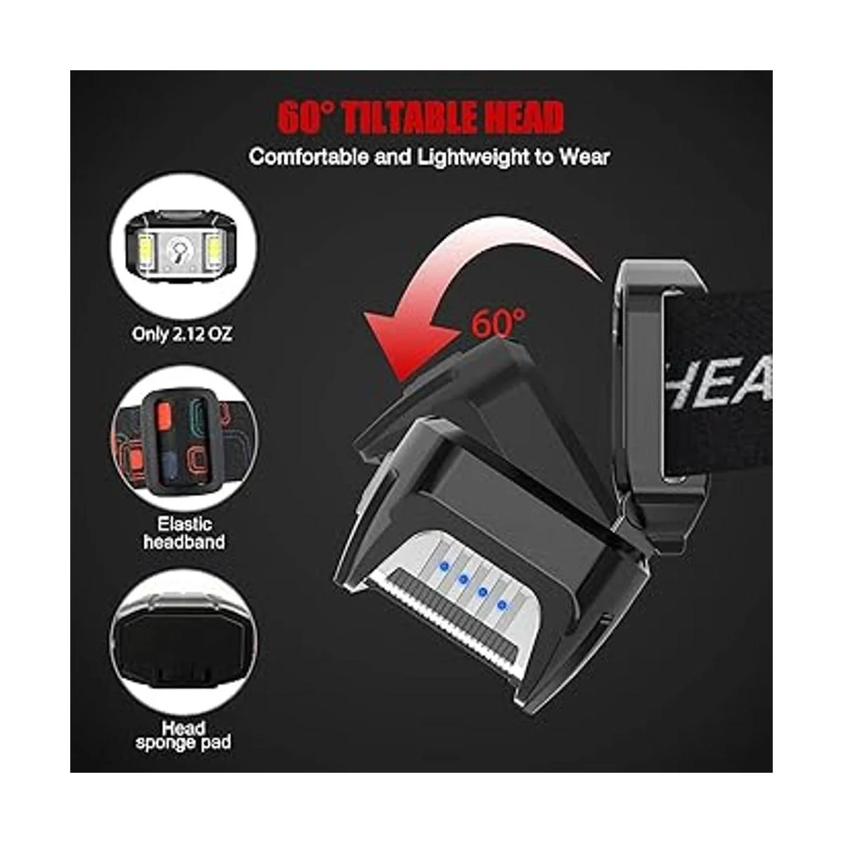 Ligero y ajustable: los faros delanteros de construcción manos libres pesan solo 2.12 onzas, se añade un diseño de almohadilla de esponja a la parte posterior de la lámpara, puedes sentirte cómodo incluso llevándolo todo el día. El cabezal de la lámpara se puede girar 60 y fijar firmemente para evitar que se agite y se deslice al correr. La linterna de cabeza utiliza una cómoda correa elástica, que se puede ajustar fácilmente en longitud para adaptarse perfectamente a la cabeza de adultos o niños, casco duro y cascos.