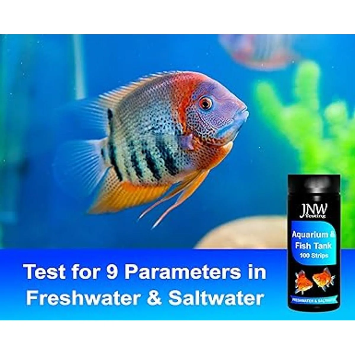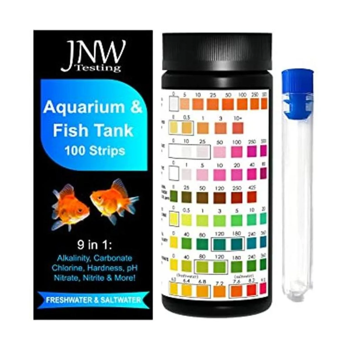 JNW Direct Tiras de prueba de acuario 9 en 1 con libro electrónico, kit de prueba de agua para acuario con tiras de prueba de tanque de peces rápidas y precisas, 100 tiras de prueba