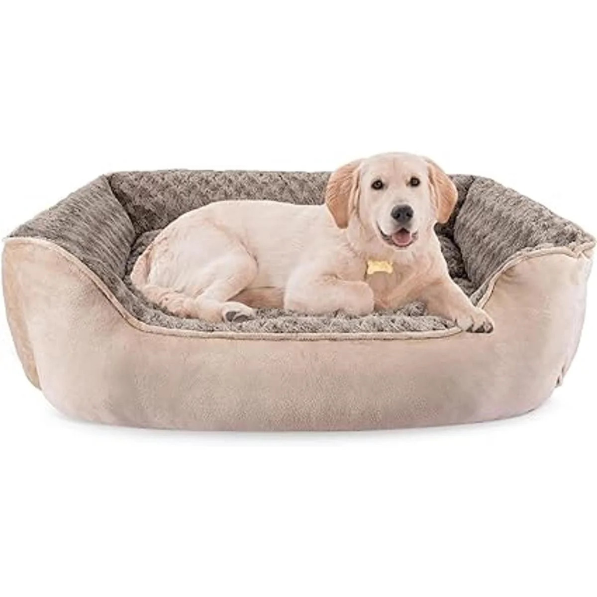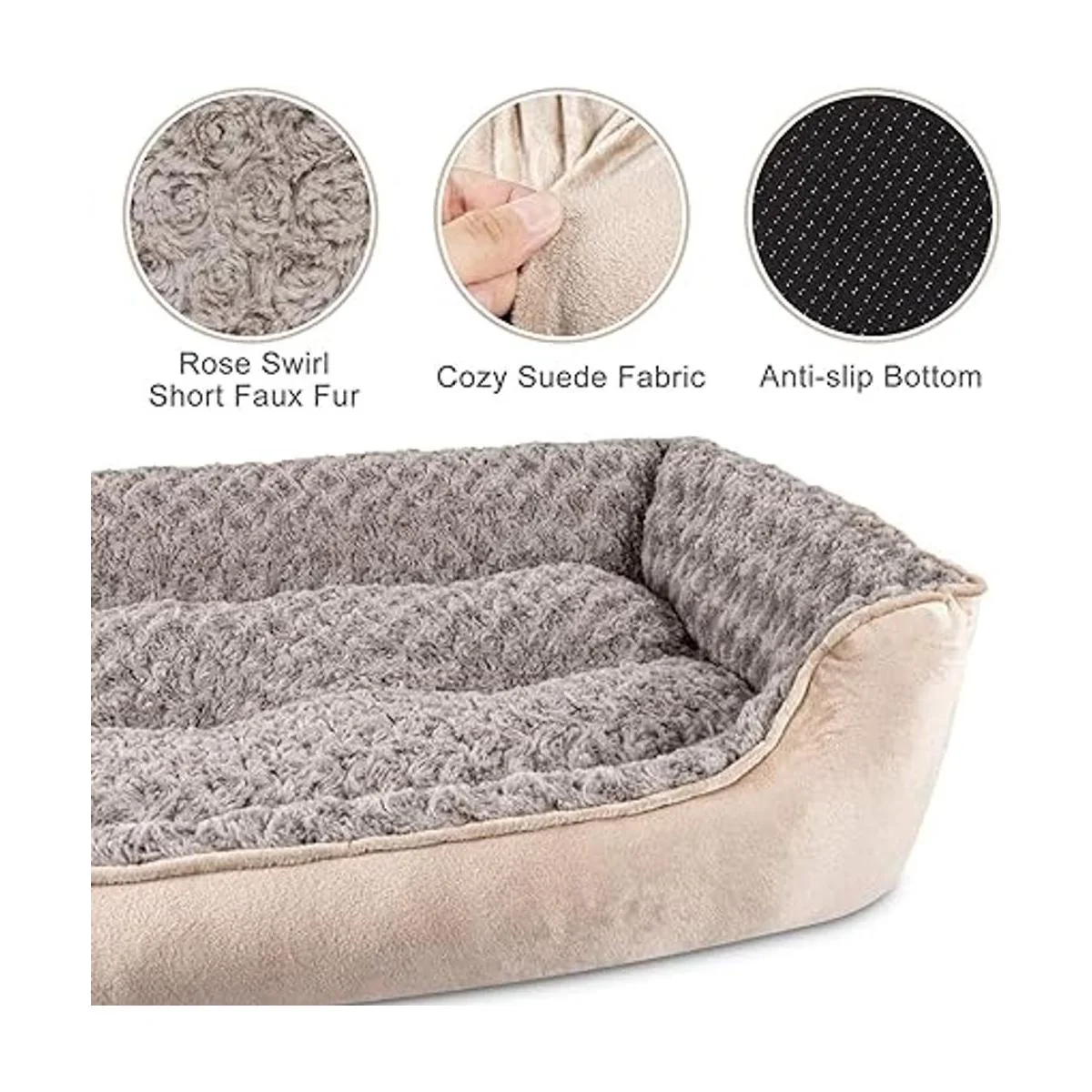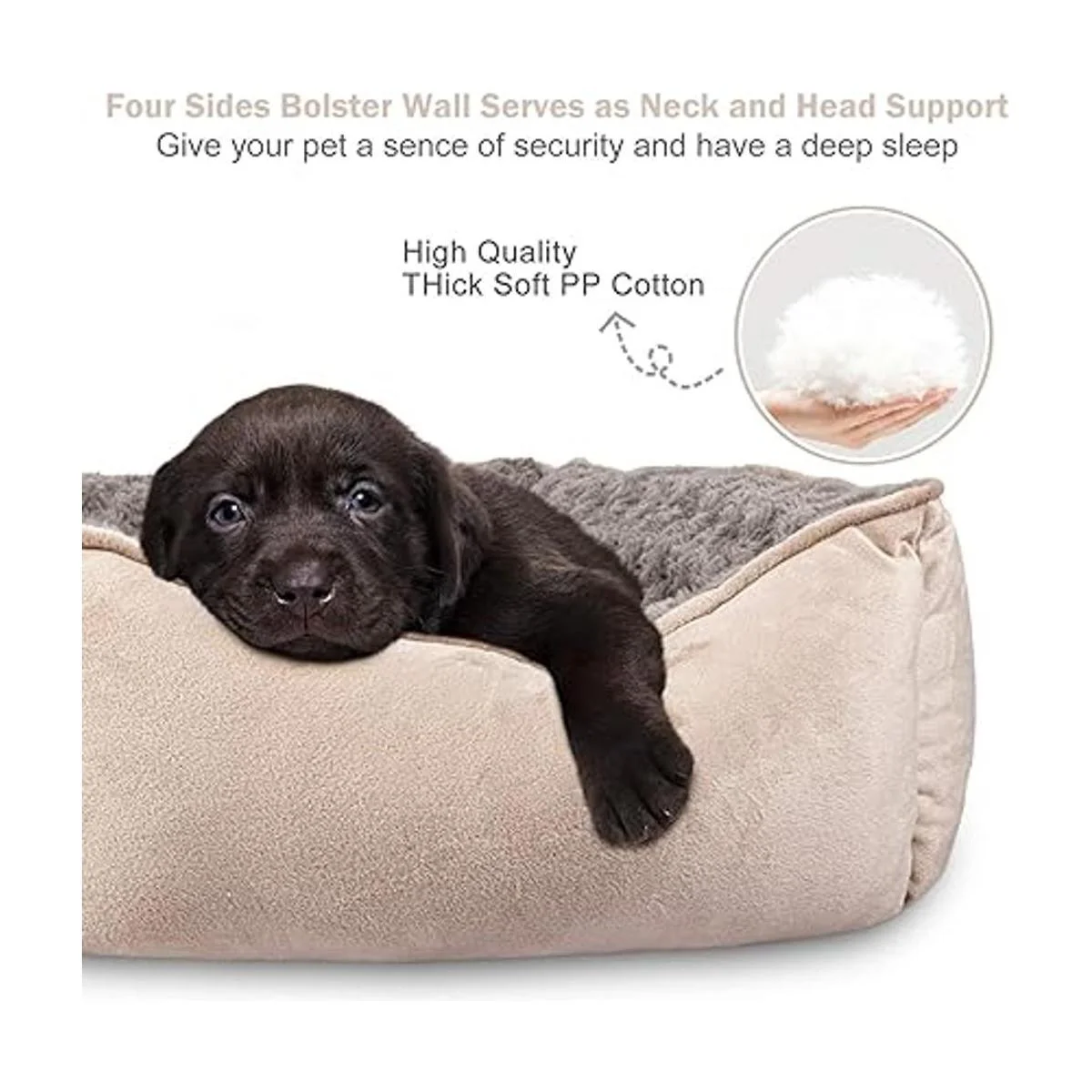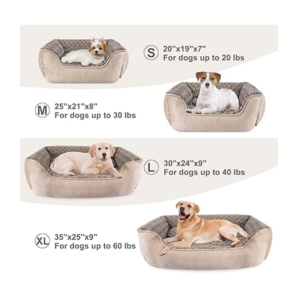 JOEJOY Cama rectangular para perros grandes, medianos y pequeños, lavable a máquina, sofá cama, antideslizante, suave, transpirable, duradero, ortopédico, calmante, para mascotas, varios tamaños, beige