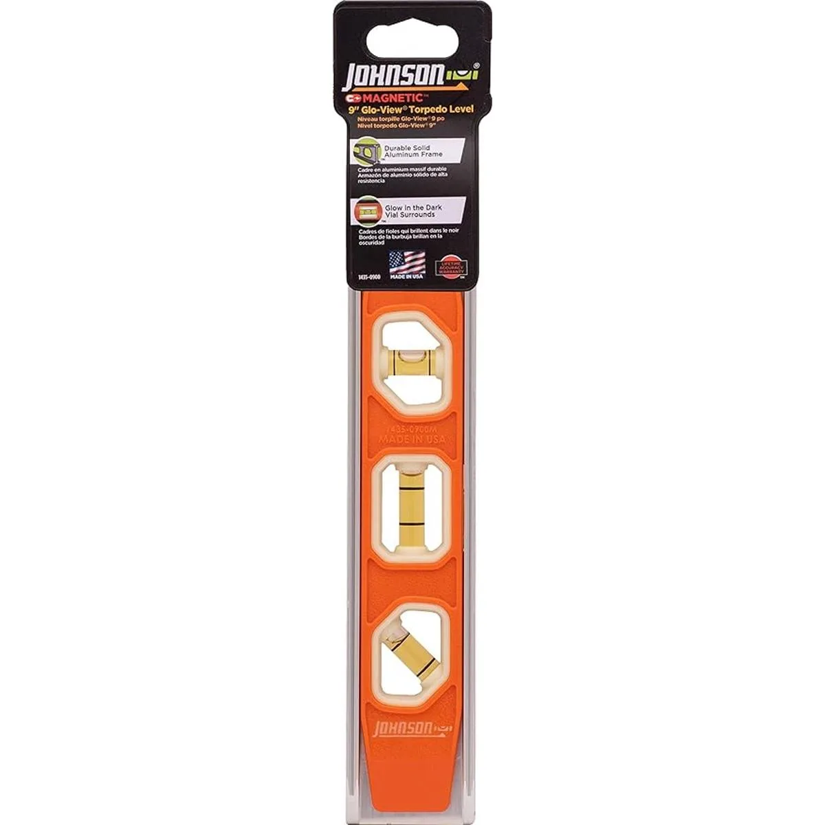 Johnson Level Tool 14350900 Nivel de torpedo magnético GloView, 9 pulgadas, naranja, 1 nivel