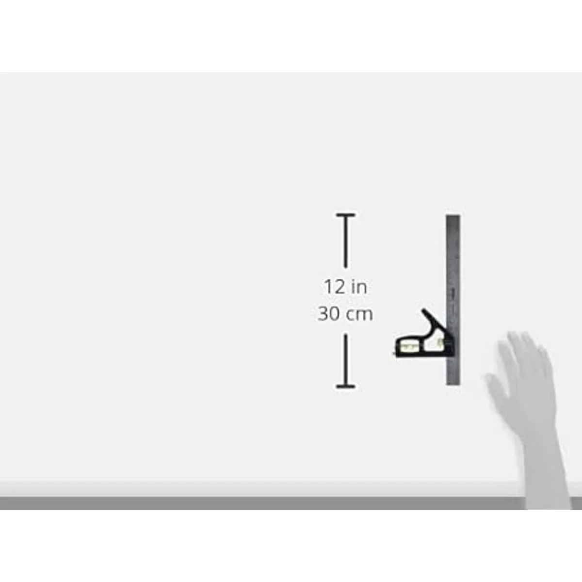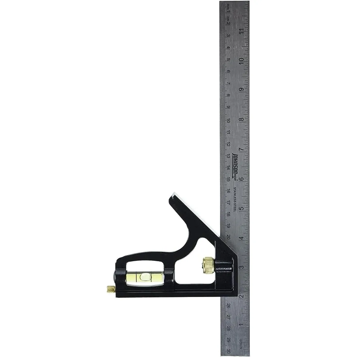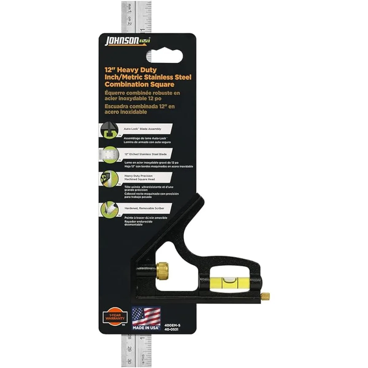Johnson Level Tool 400EMS Cuadrado de combinación de metal métrico, profesional, resistente, 12 pulgadas, plateado, 1 cuadrado