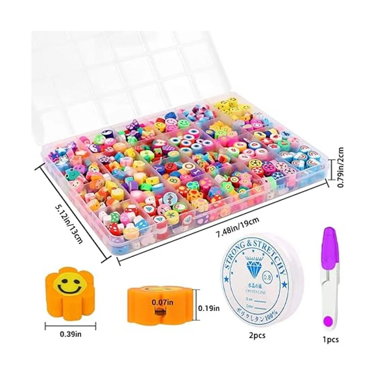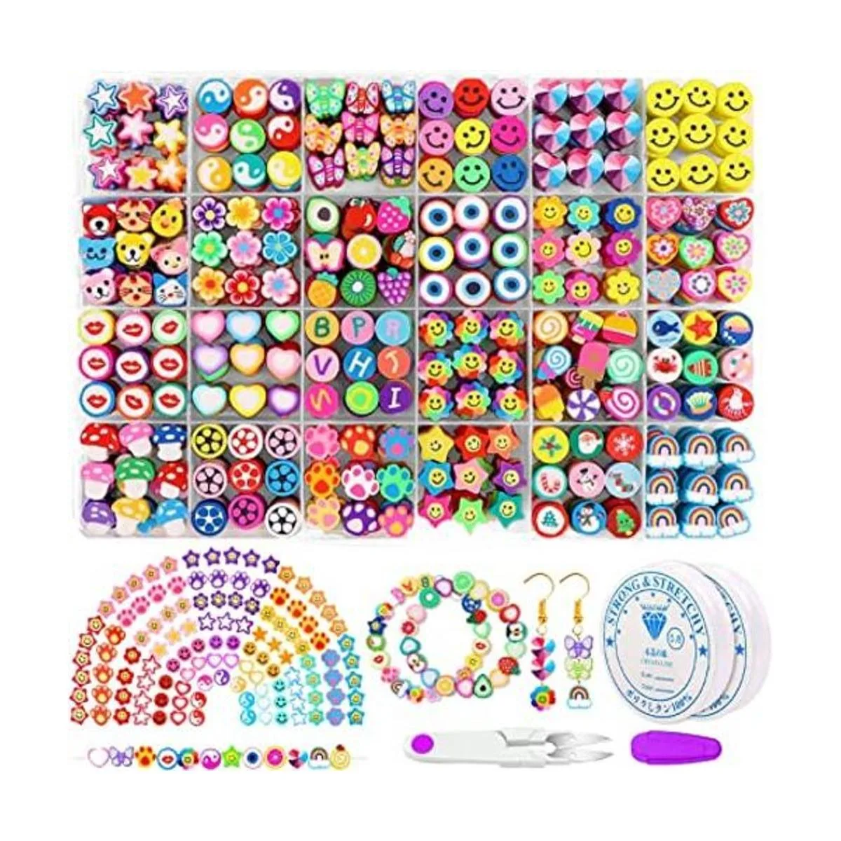 All You Need Included: You will get 480pcs polymer clay beads charms in 24 different styles, and all the clay beads are packed in a plastic gift box, the beaded set is also equipped with two rolls of 5m crystal elastic strings and a pair of exquisite scissors, which can meet all your needs for DIY jewelry production