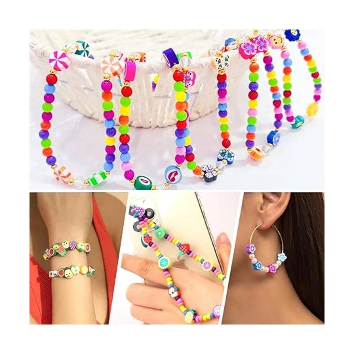 Wide Range of Applications: Perfect for Beading, Jewelry Making, bracelet earring necklace making supplies, phone charm, phone lanyard wrist, pendants, waist beads kit, hairpin or hair braids for kids, fashionable shoes decor and party decoration. Smile face beads adhered to hairpin would be a perfect hair decoration.