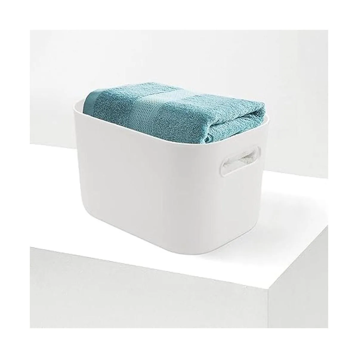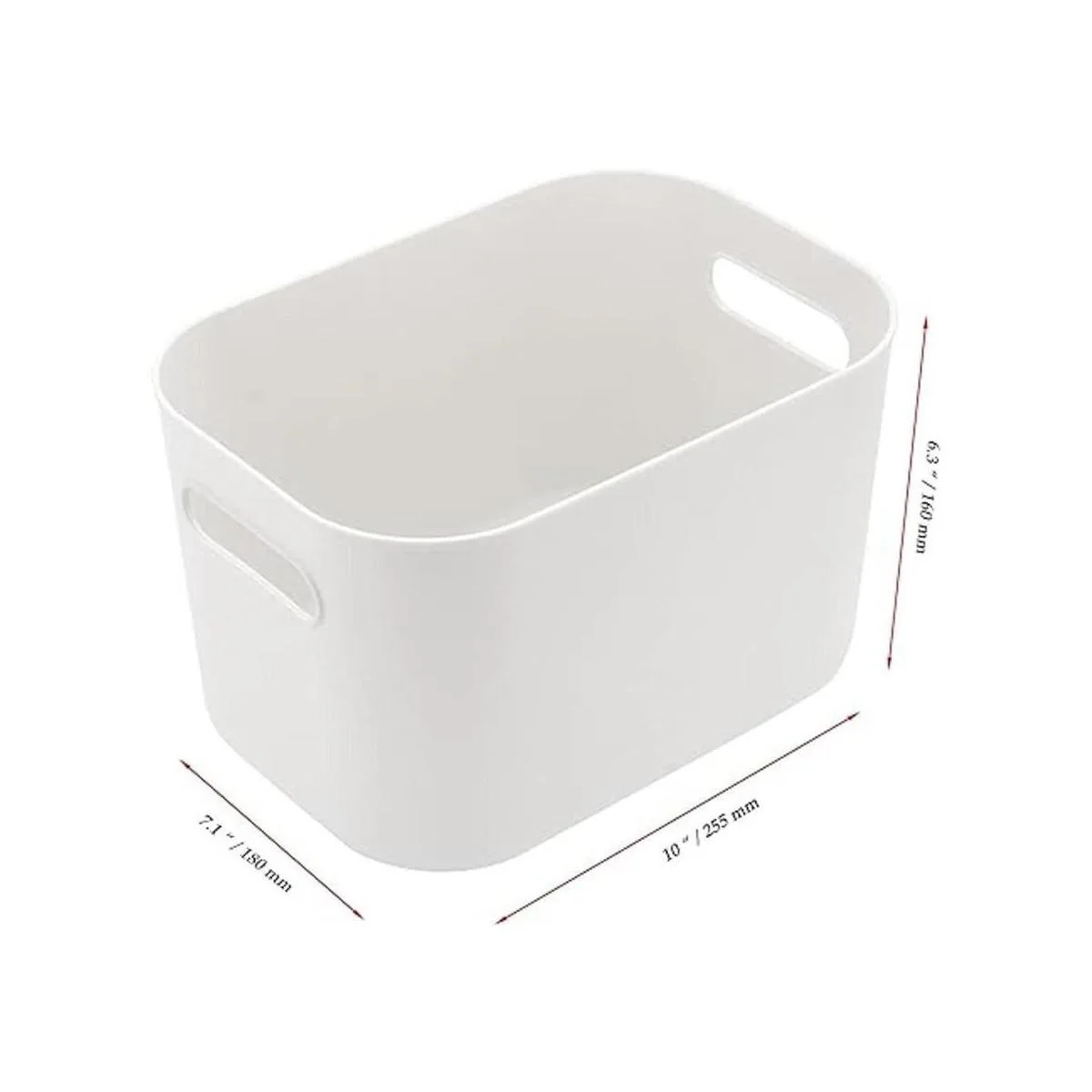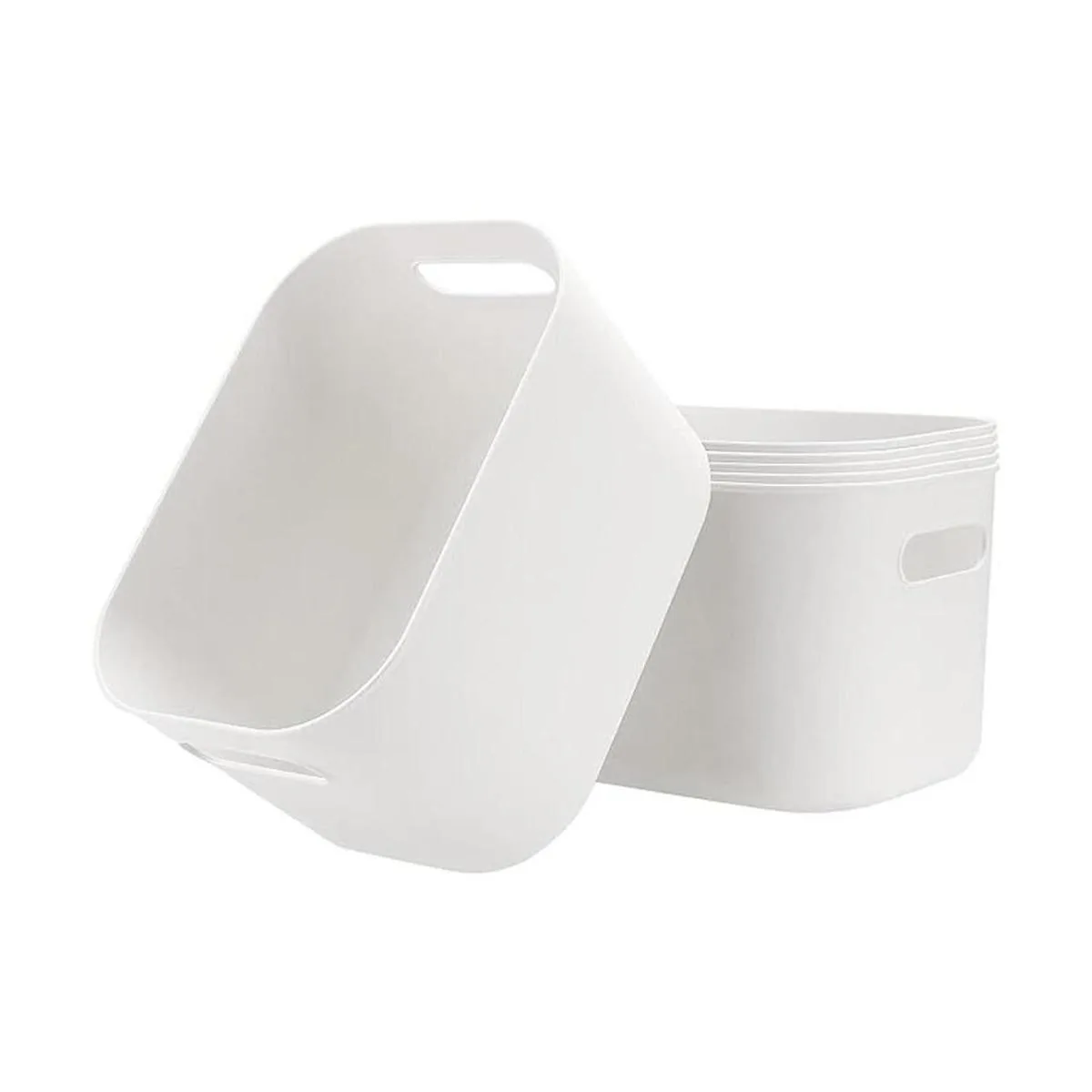 Ampliamente utilizado: el tamaño de cada contenedor de almacenamiento blanco es de 10 x 7 x 6.3 pulgadas. Es lo suficientemente grande como para almacenar una variedad de cosas, perfecto para usar en baños para lavados corporales, champús, cosméticos, lociones, toallas, jabones de manos, bolas de baño, etc. También puede ser ideal para usar en dormitorio, comedor, cocina, balcón, lavandería, trastero, garaje para almacenar tus necesidades diarias o artículos almacenados a largo plazo