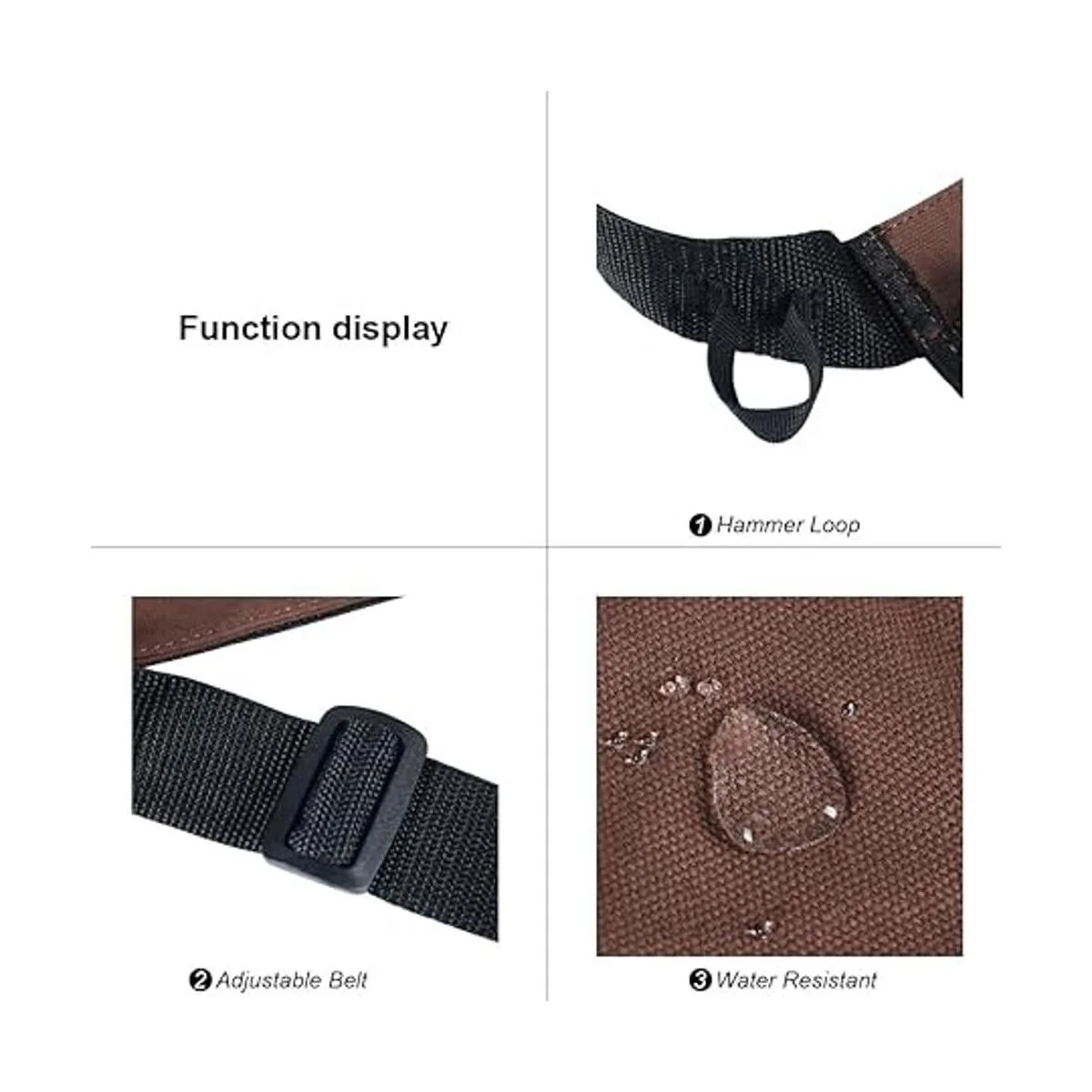 Versión mejorada: la bolsa de cintura se divide en dos grandes bolsillos principales, un bolsillo de 2.5 pulgadas de ancho y dos bolsillos deslizantes de 1.2 pulgadas de ancho, un lazo para martillo de tela, lo que hace que el almacenamiento sea más simple