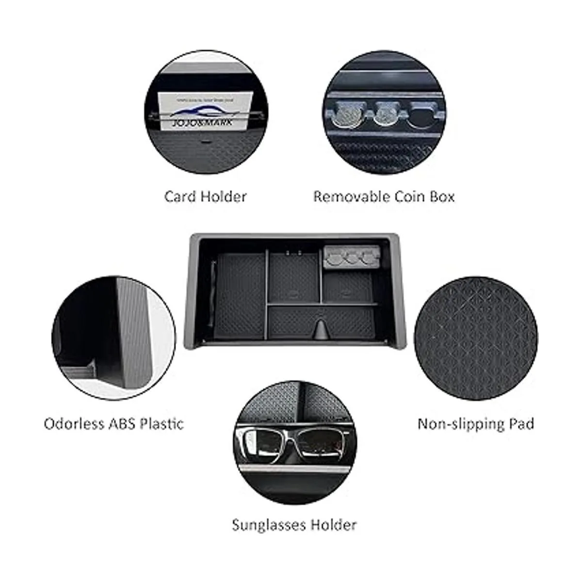 Sin ruido Esta bandeja se adapta a la forma interior de la consola central firmemente por lo que no hará ruido de sonajero. La caja de monedas extraíble sostiene las monedas firmemente, por lo que es fácil de poner y quitar