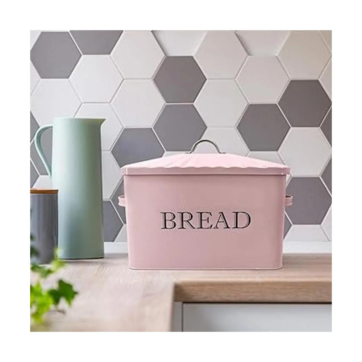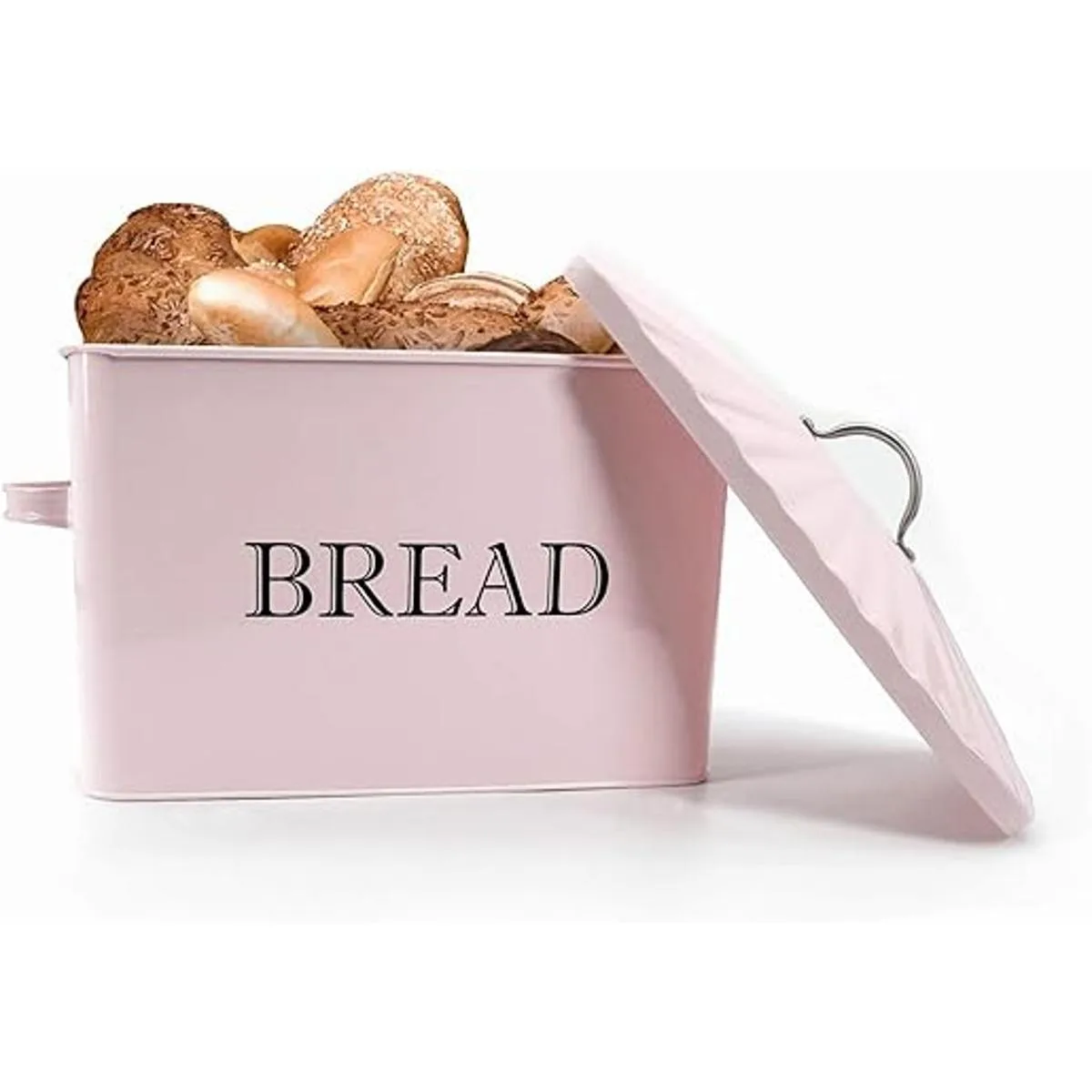 Jolitac Caja de pan de metal, contenedor de almacenamiento de pan rosa para encimera de cocina, con tapa y manos, contenedor de almacenamiento de alimentos de gran capacidad