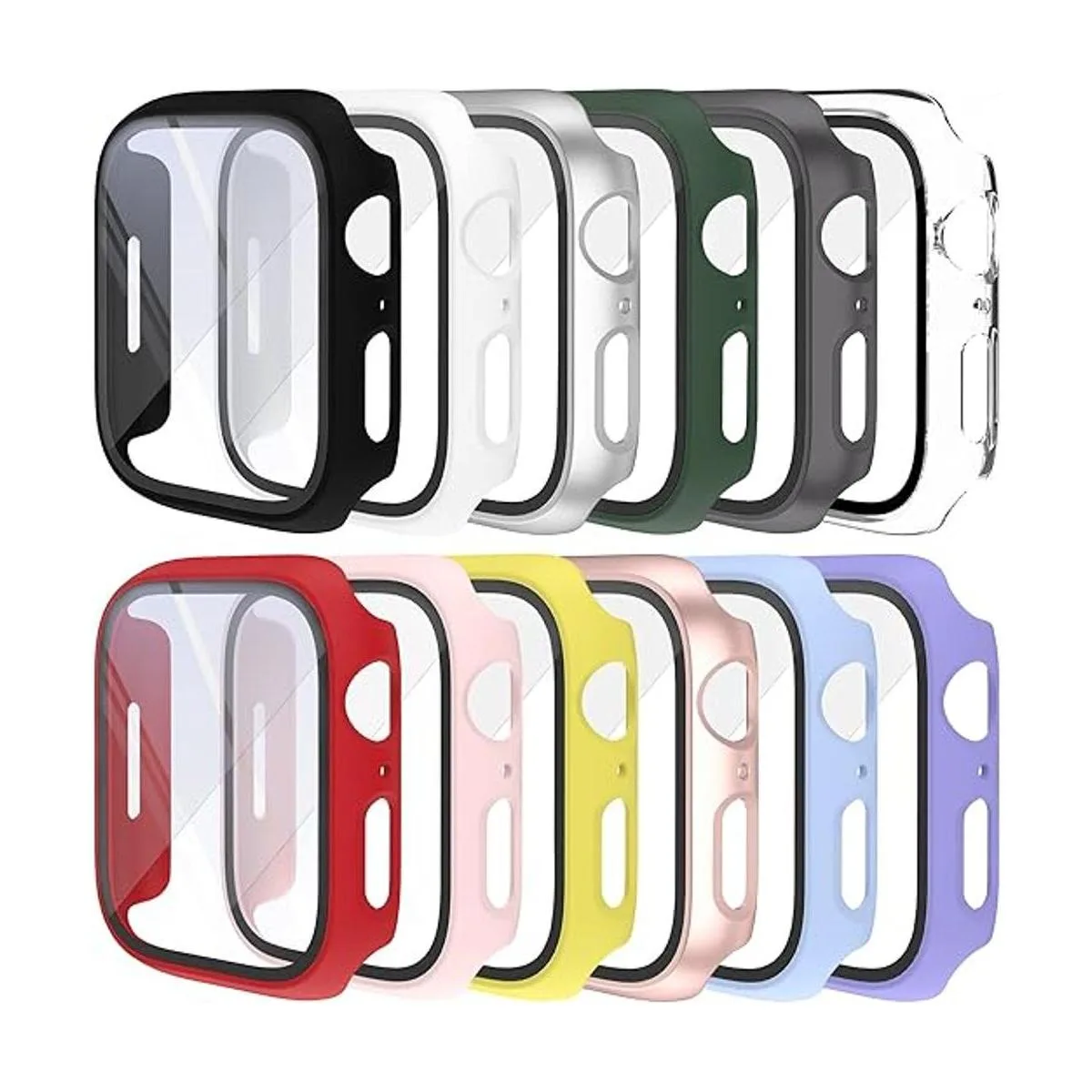 Jomitvp Funda rígida de policarbonato con protector de pantalla de vidrio templado, 12 unidades, compatible con iWatch Series 87 para Apple Watch Series 87