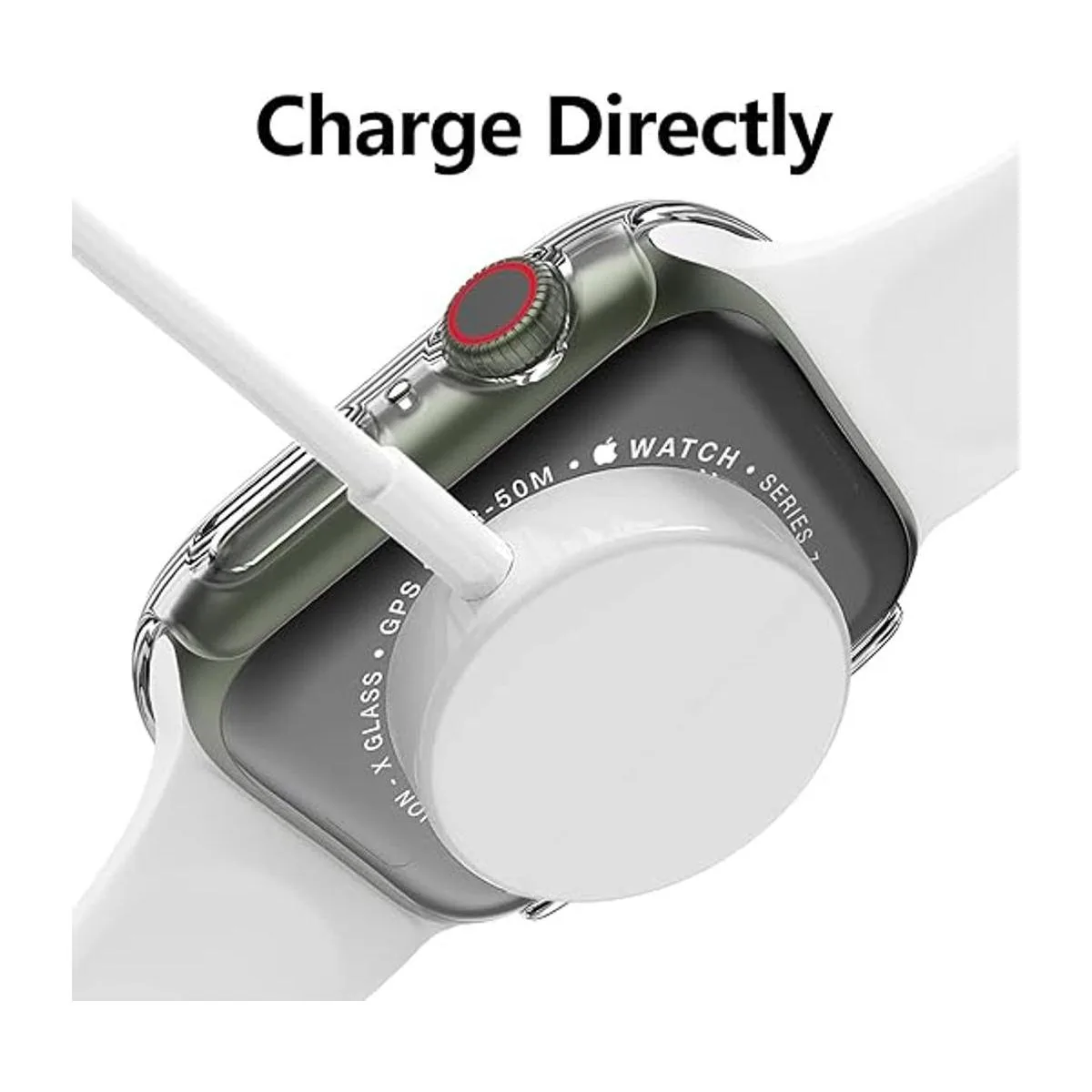 Ajuste perfecto: esta funda con recortes precisos, fácil acceso a todos los controles, botones, sensores del iWatch Series 7. Carga directamente, no es necesario quitar la caja del reloj o la correa. Puedes poner y quitar fácilmente esta funda, no afecta a la inserción de la correa