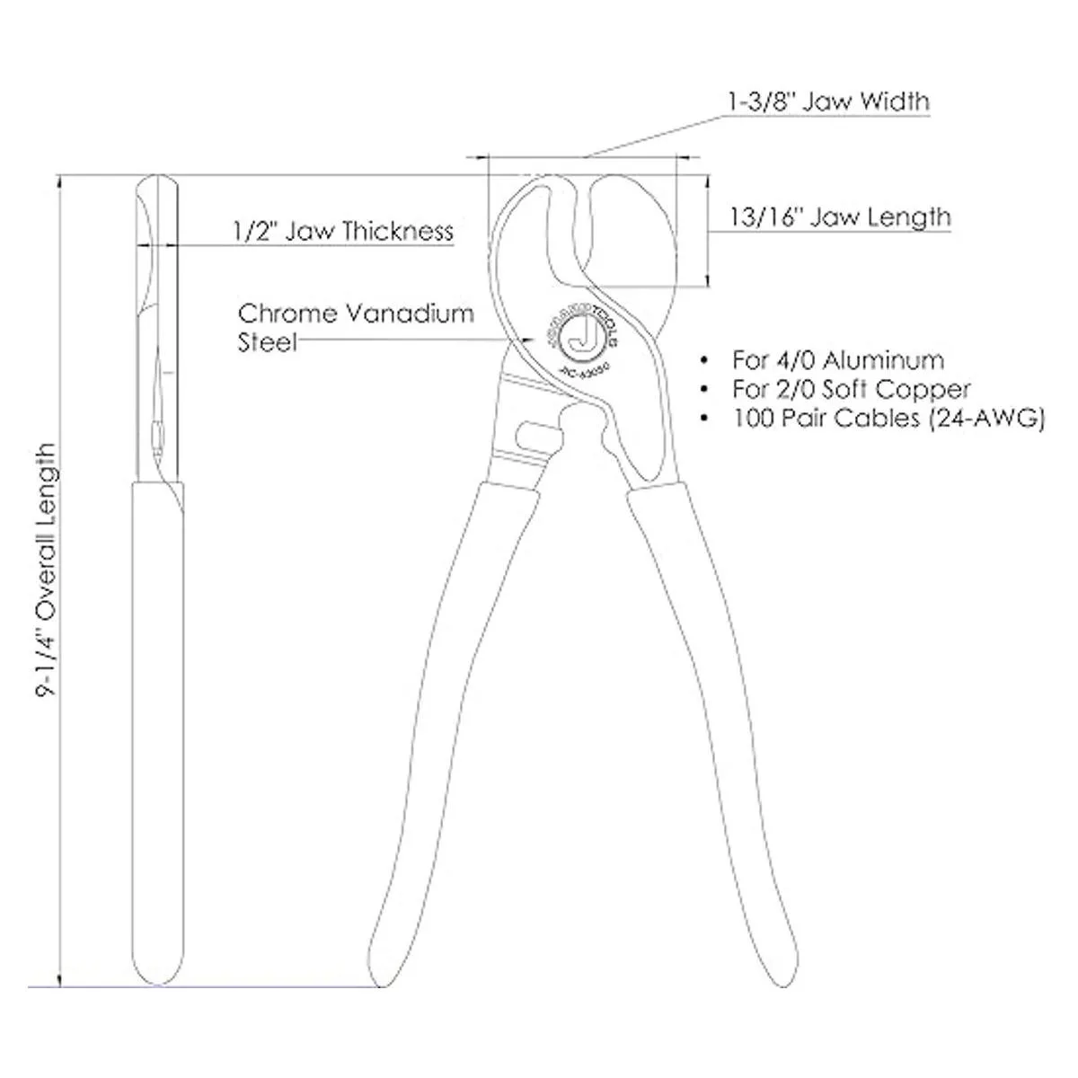 Jonard JIC63050 Cortador de cables de alto apalancamiento con mango rojo, 914 pulgadas de longitud