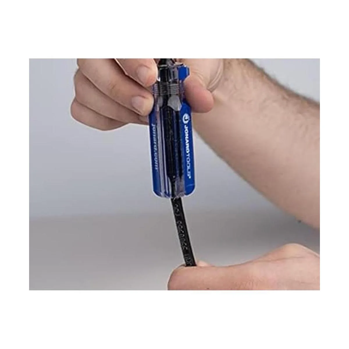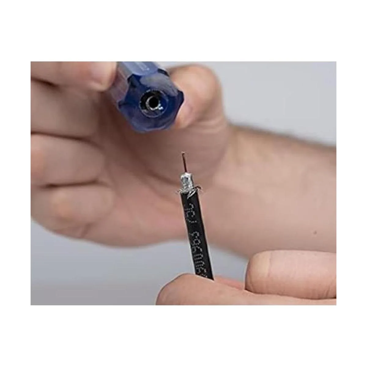 El extremo abombado de la herramienta facilita la expansión del cable proporcionando una inserción más fácil de los conectores F.