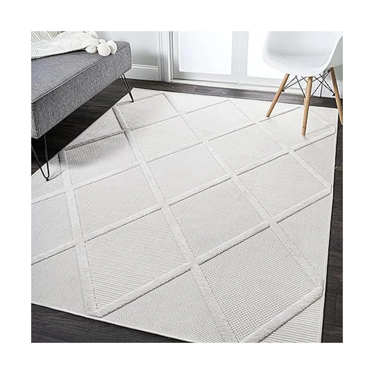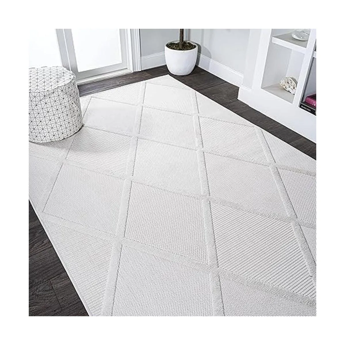 JONATHAN Y IBZ101D3 Alfombra decorativa con diseño de enrejado de diamantes para interiores y exteriores, estilo bohemio, geométrico, fácil limpieza, para dormitorio, cocina, patio, porche, no se desprende, 3 x 5 pulgadas, color marfil