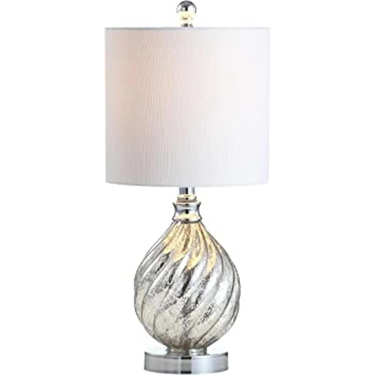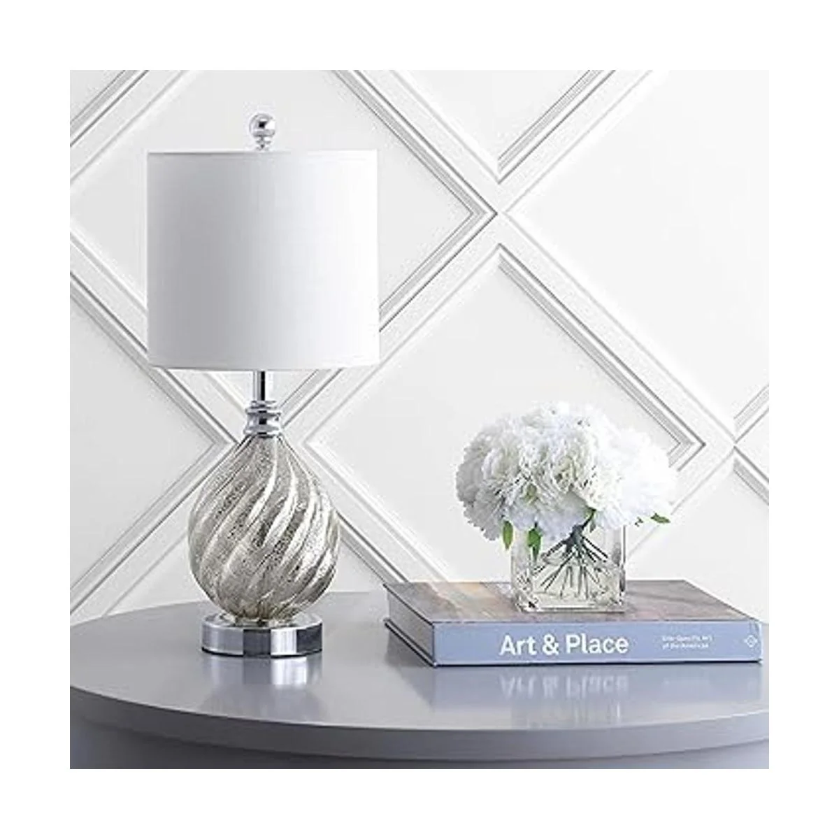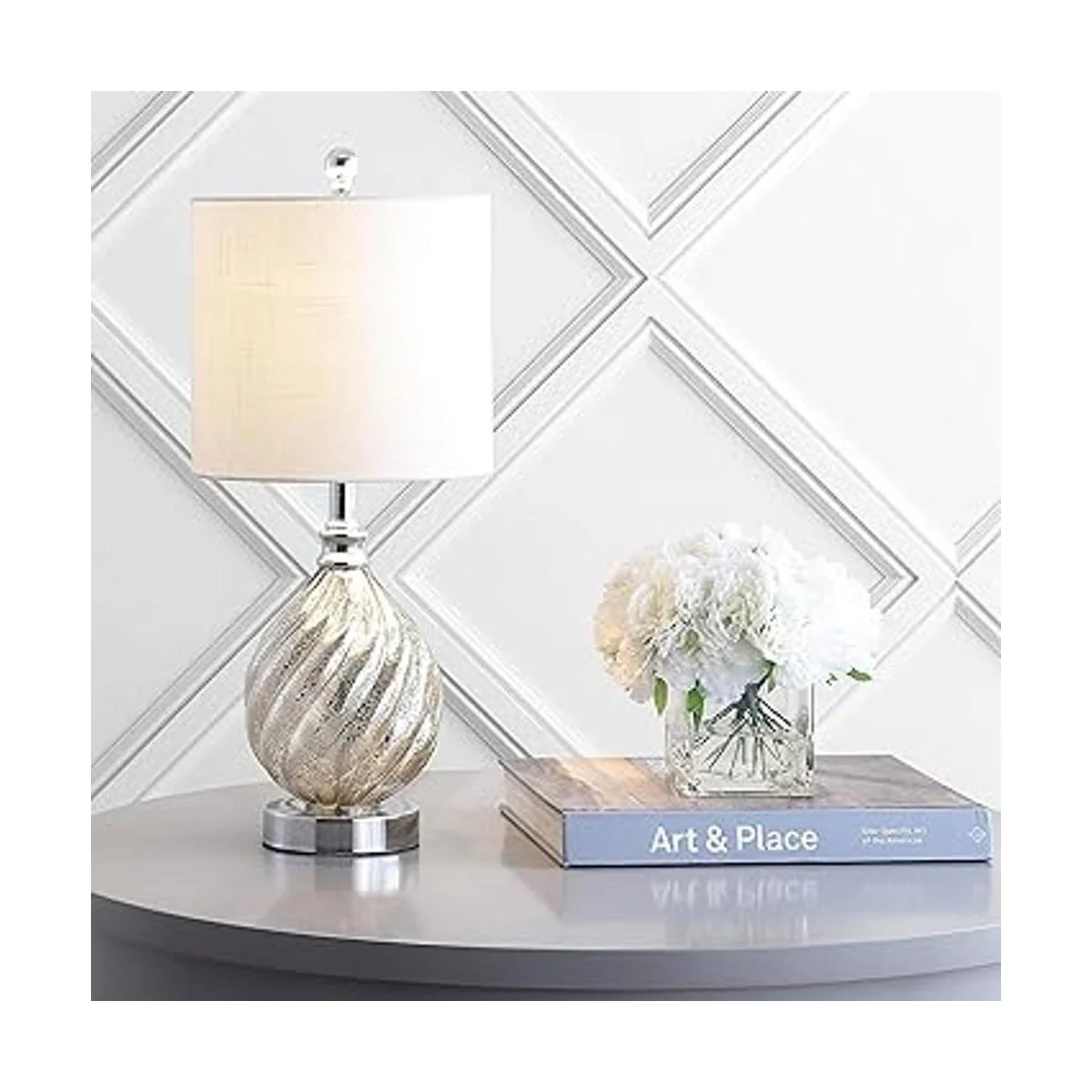 JONATHAN Y JYL1034A Lawrence Lámpara de mesa LED de vidriometal de 20.5 pulgadas, lámpara de mesilla de noche para dormitorio, sala de estar, oficina, estantería universitaria, bombilla LED incluida, plata mercurio