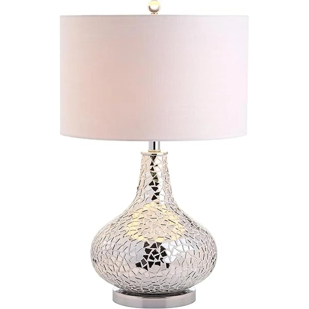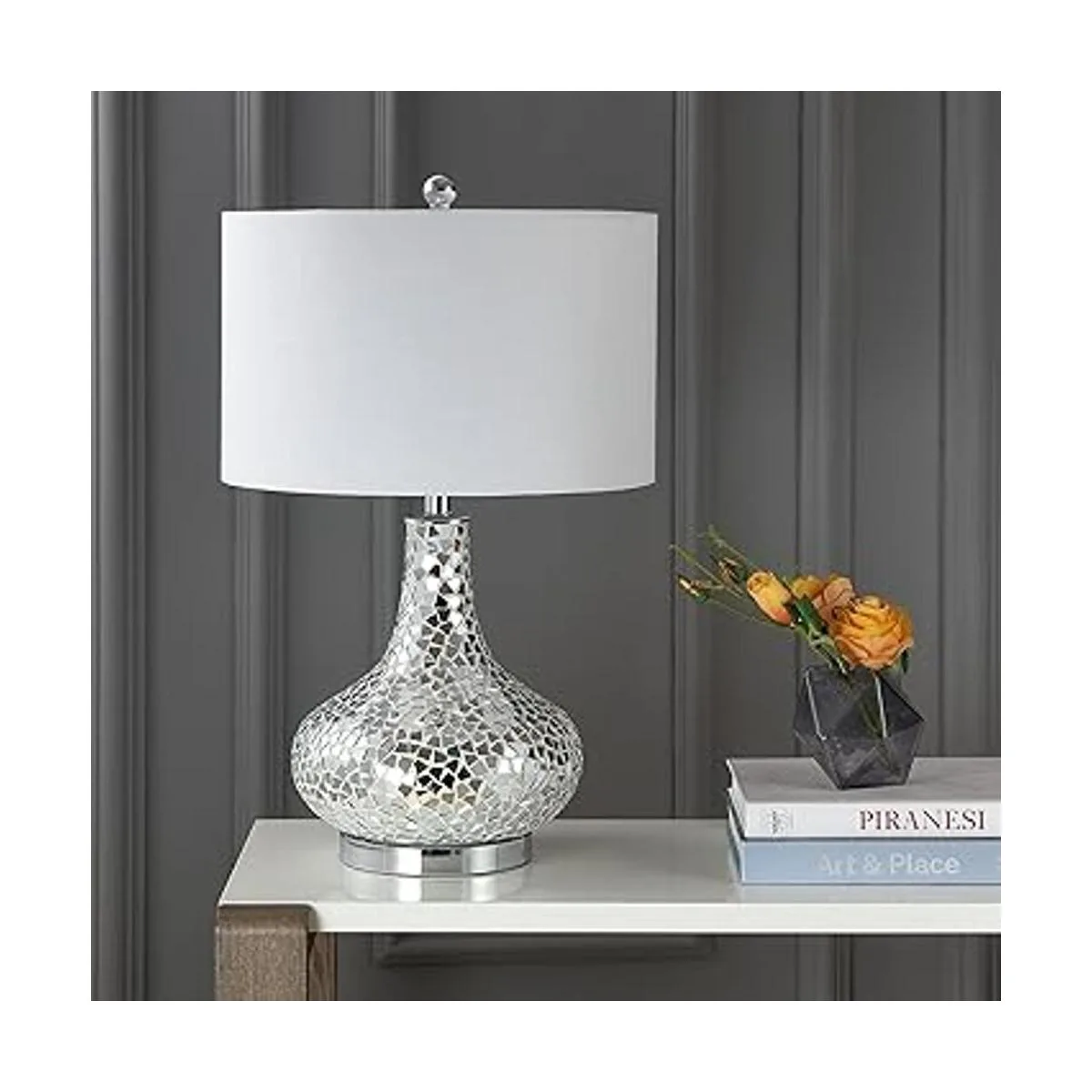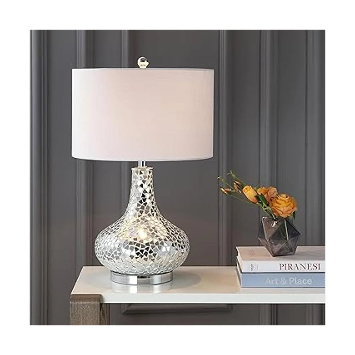 JONATHAN Y JYL1056A Emilia Lámpara de mesa LED de mosaico espejado de 26 pulgadas, contemporánea, glamurosa, mesita de noche, para dormitorio, sala de estar, oficina, biblioteca, bombillas LED incluidas, color plateado
