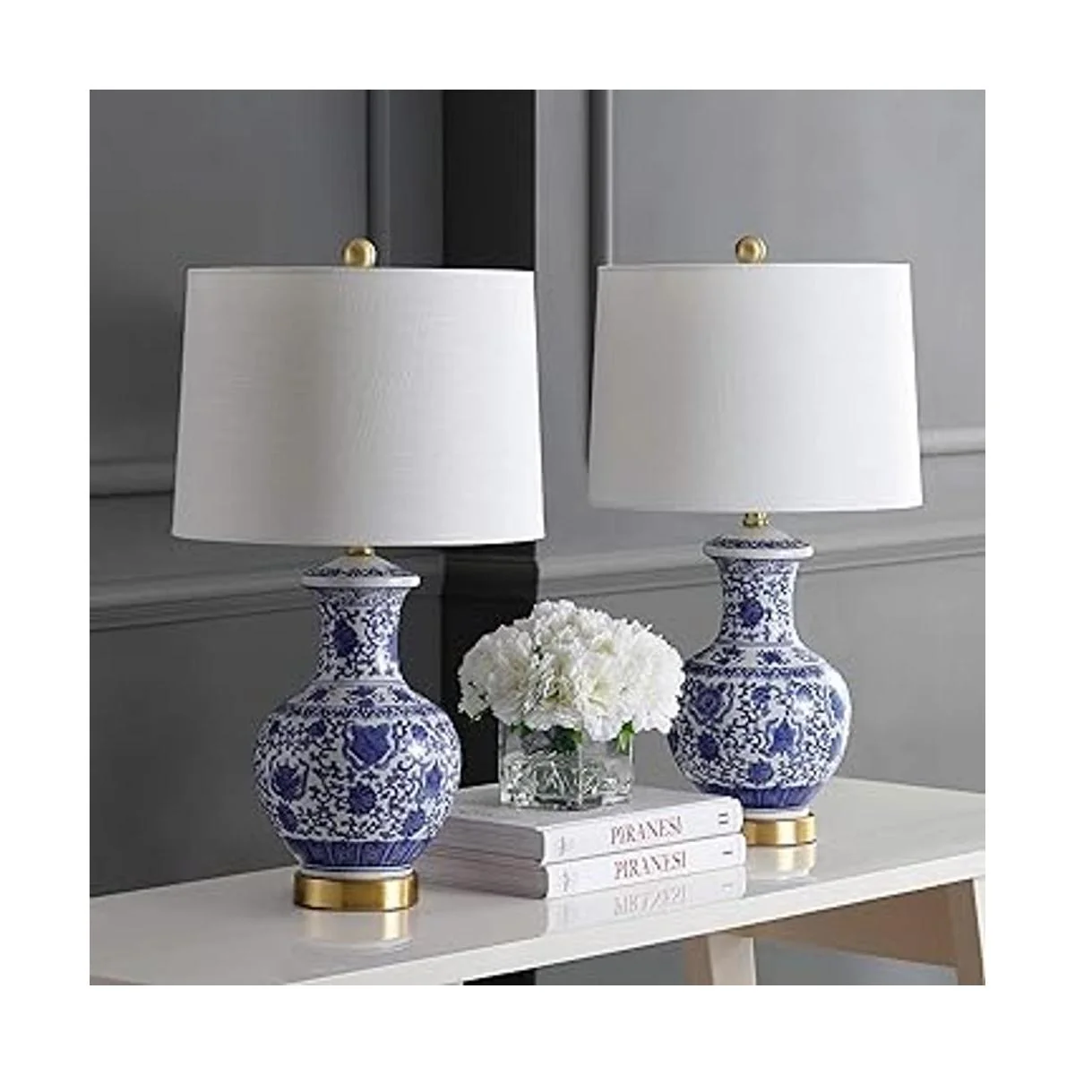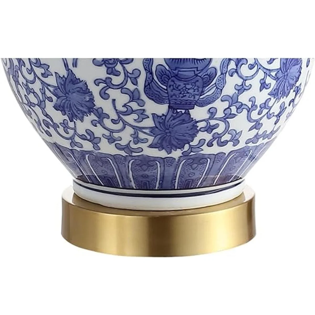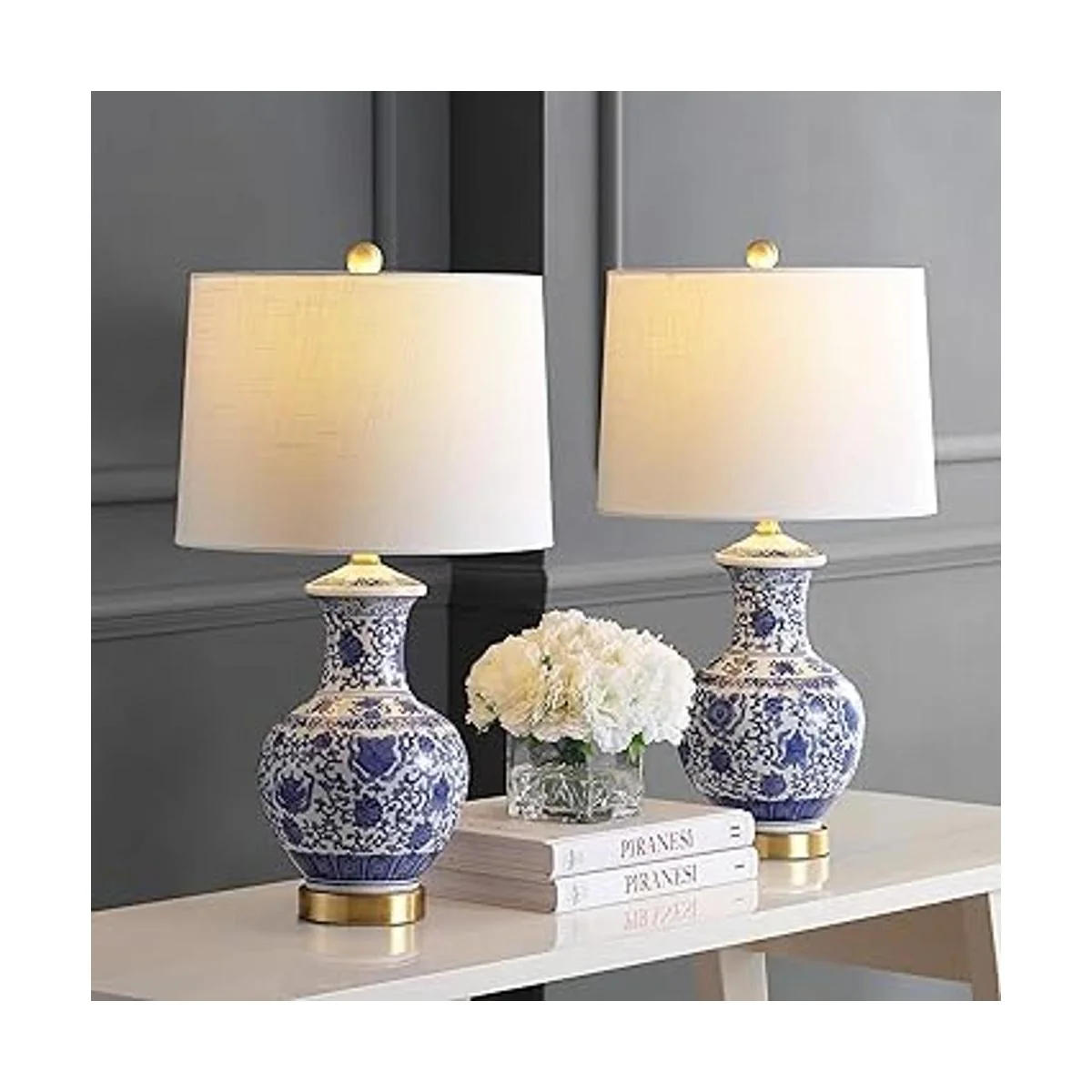 JONATHAN Y JYL1072ASET2 Juego de 2 lámparas de mesa Jennifer de 25.25 pulgadas de cerámicametal, lámpara de mesa LED de mesita de noche para dormitorio, sala de estar, oficina, estantería universitaria, azulblanco