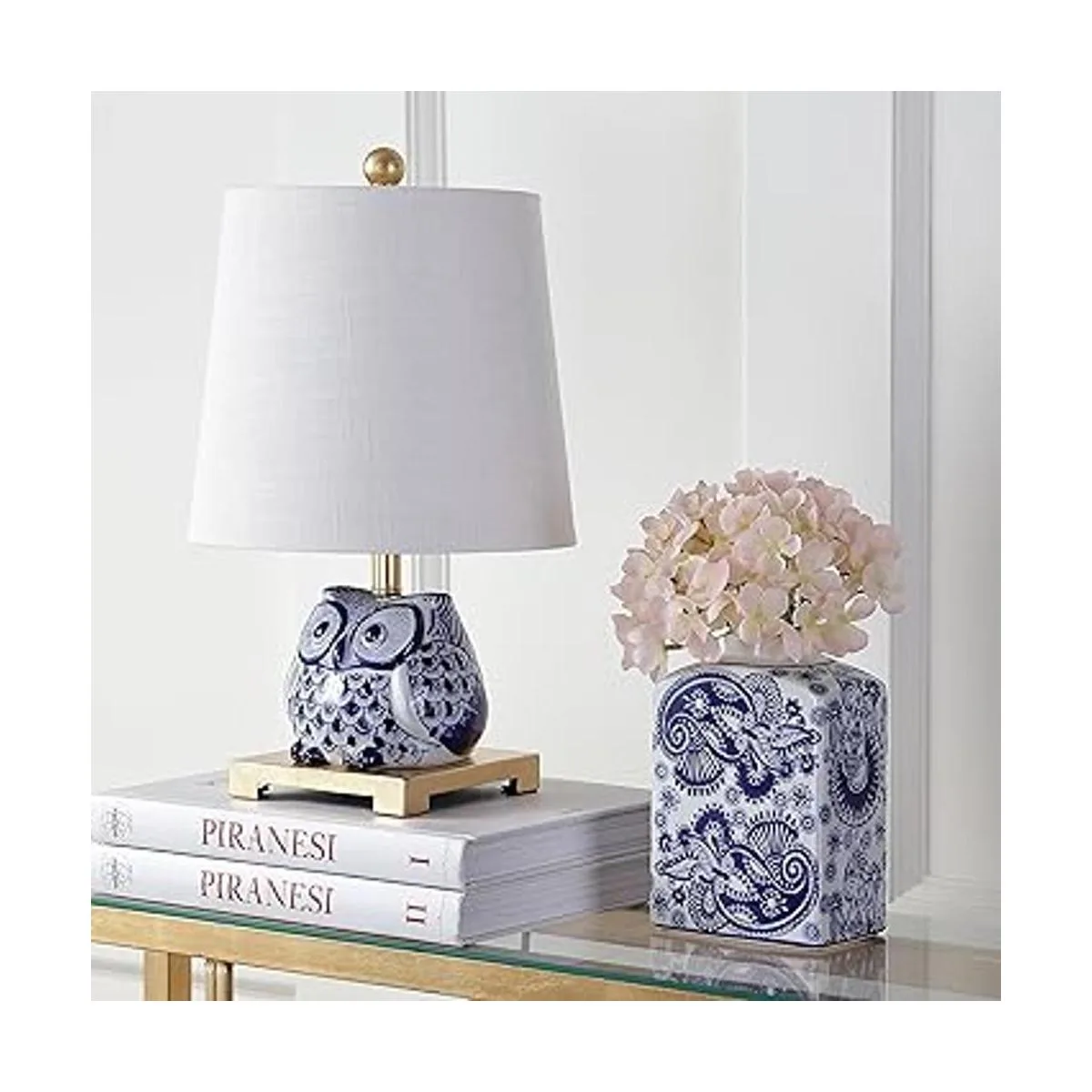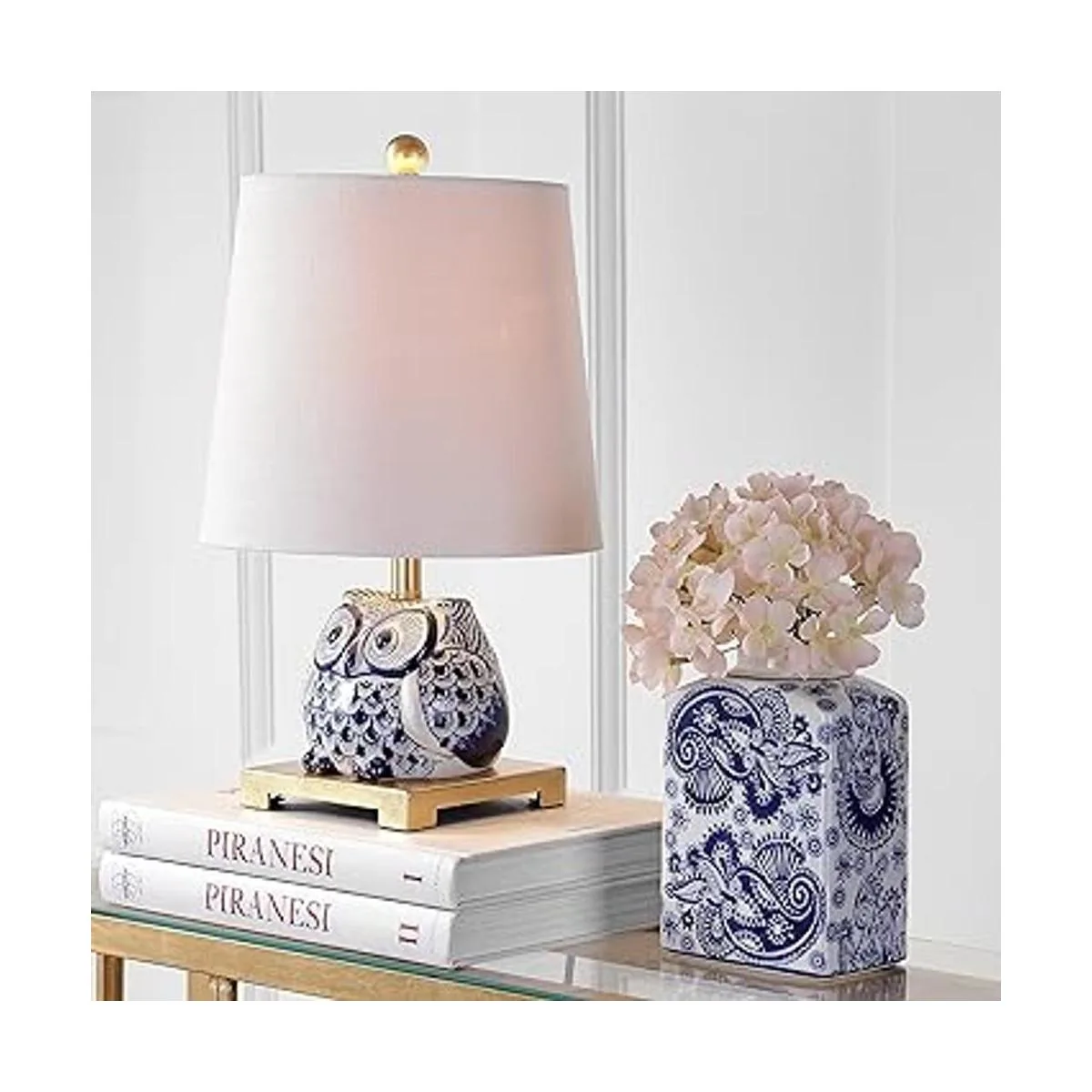 JONATHAN Y JYL3014A Justina Mini lámpara de mesa LED de cerámica de 16 pulgadas, de transición para dormitorio, sala de estar, oficina, dormitorio universitario, mesa de café, estantería, azulblanco