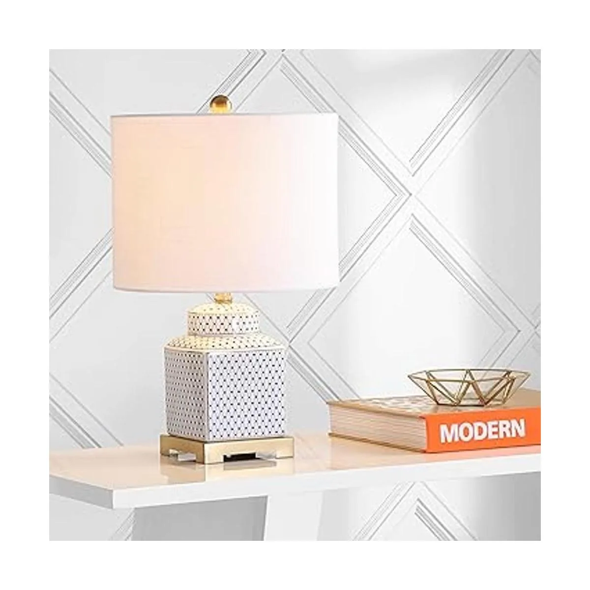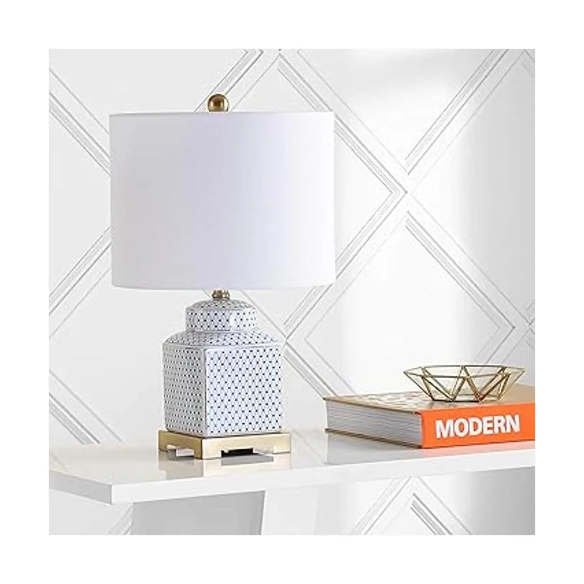Tradicional con un giro: esta lámpara de tarro de jengibre está hecha moderna por el patrón de esmalte de red de red