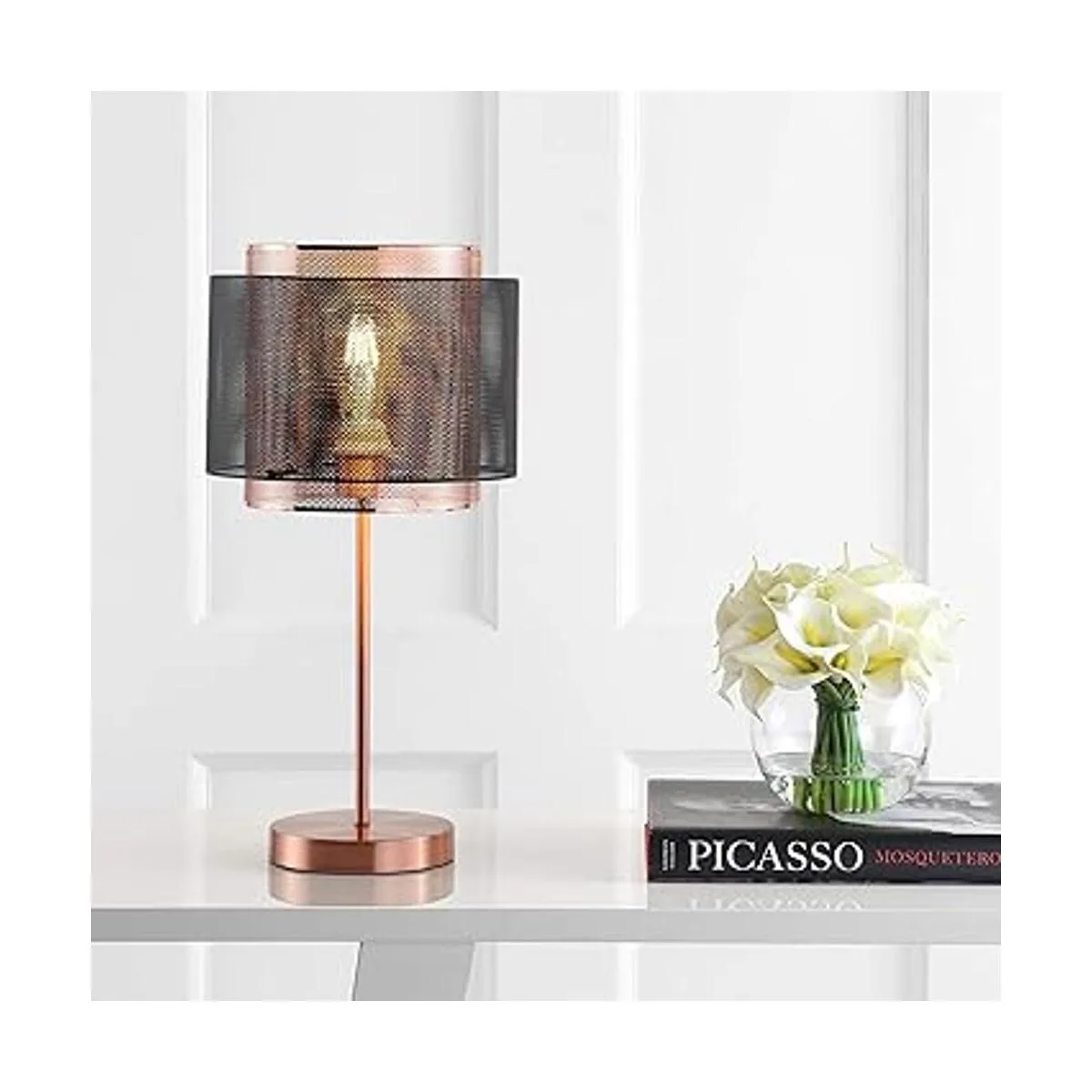 JONATHAN Y JYL6106A Tribeca Lámpara de mesa LED de metal de 19.7 pulgadas, contemporánea, de transición, mesita de noche, para dormitorio, sala de estar, oficina, estantería universitaria, bombilla LED incluida, cobre