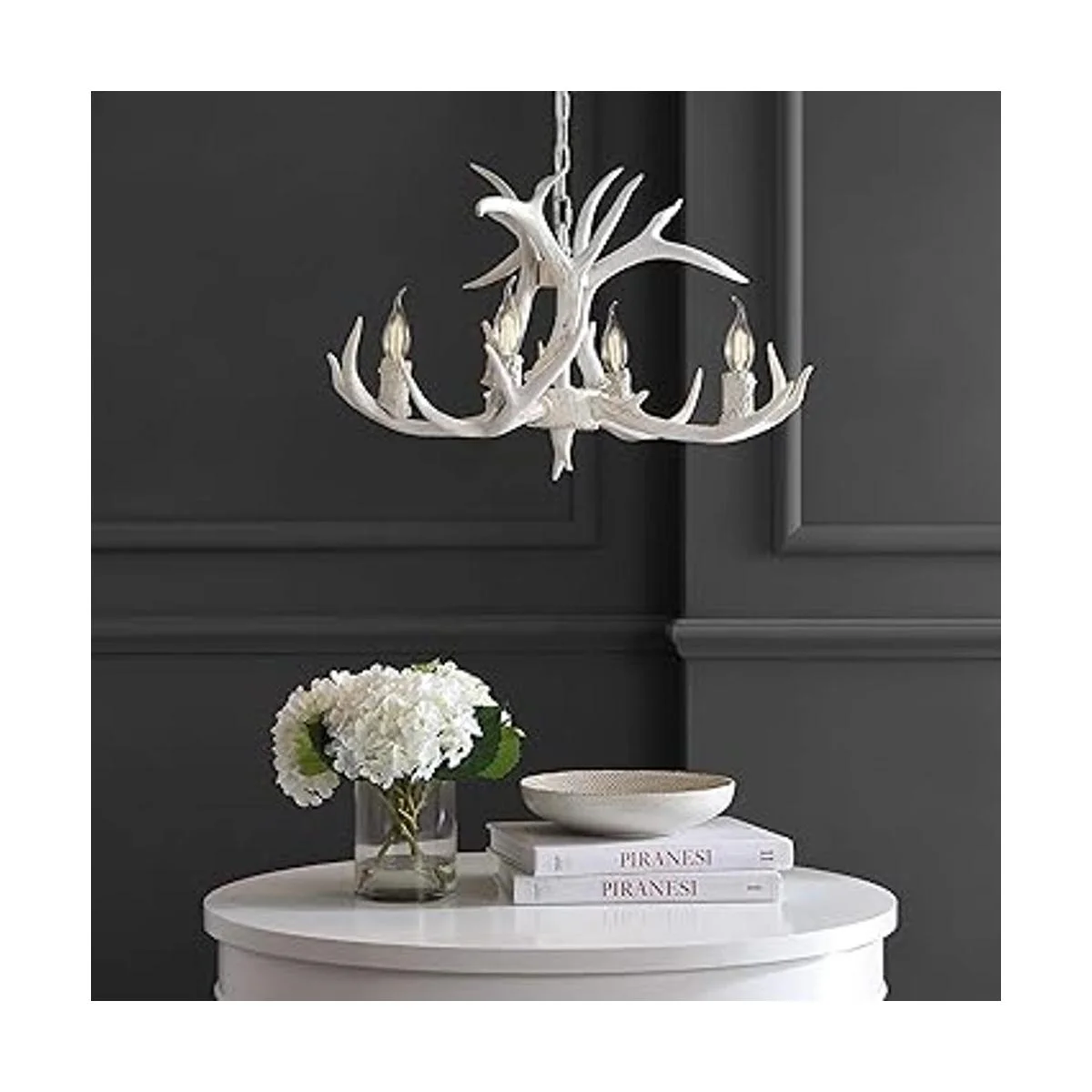 Acabado en blanco, el cuerpo de resina de esta pieza se asemeja a las astas texturizadas