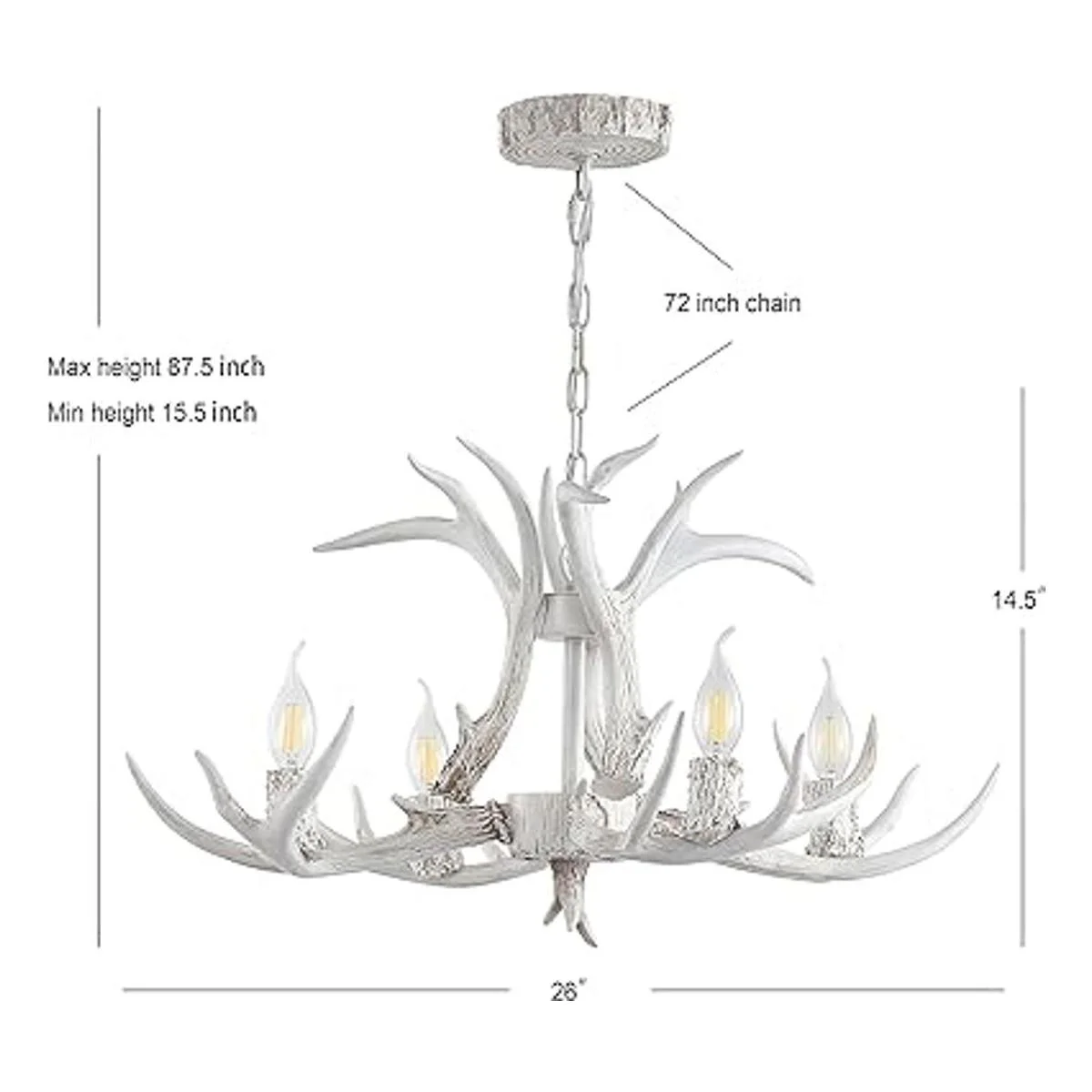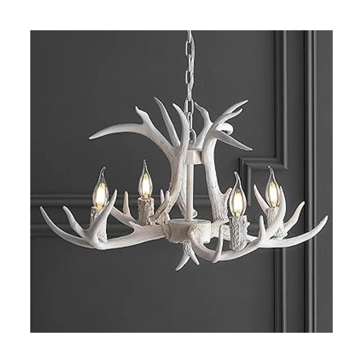JONATHAN Y JYL6301B Eldora Lámpara de araña de resina ajustable de 26 pulgadas, 4 luces, brillante, rústico, cabaña, transicional, comedor regulable, sala de estar, cocina, vestíbulo, dormitorio, color blanco