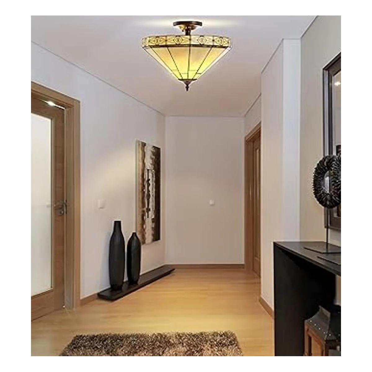 JONATHAN Y JYL8026A Jazmín 16.0 in estilo TiffanyGlass LED semiempotrado montaje tradicional regulable, 2700K luz cálida acogedora para cocina, pasillo, baño, escaleras, color crema