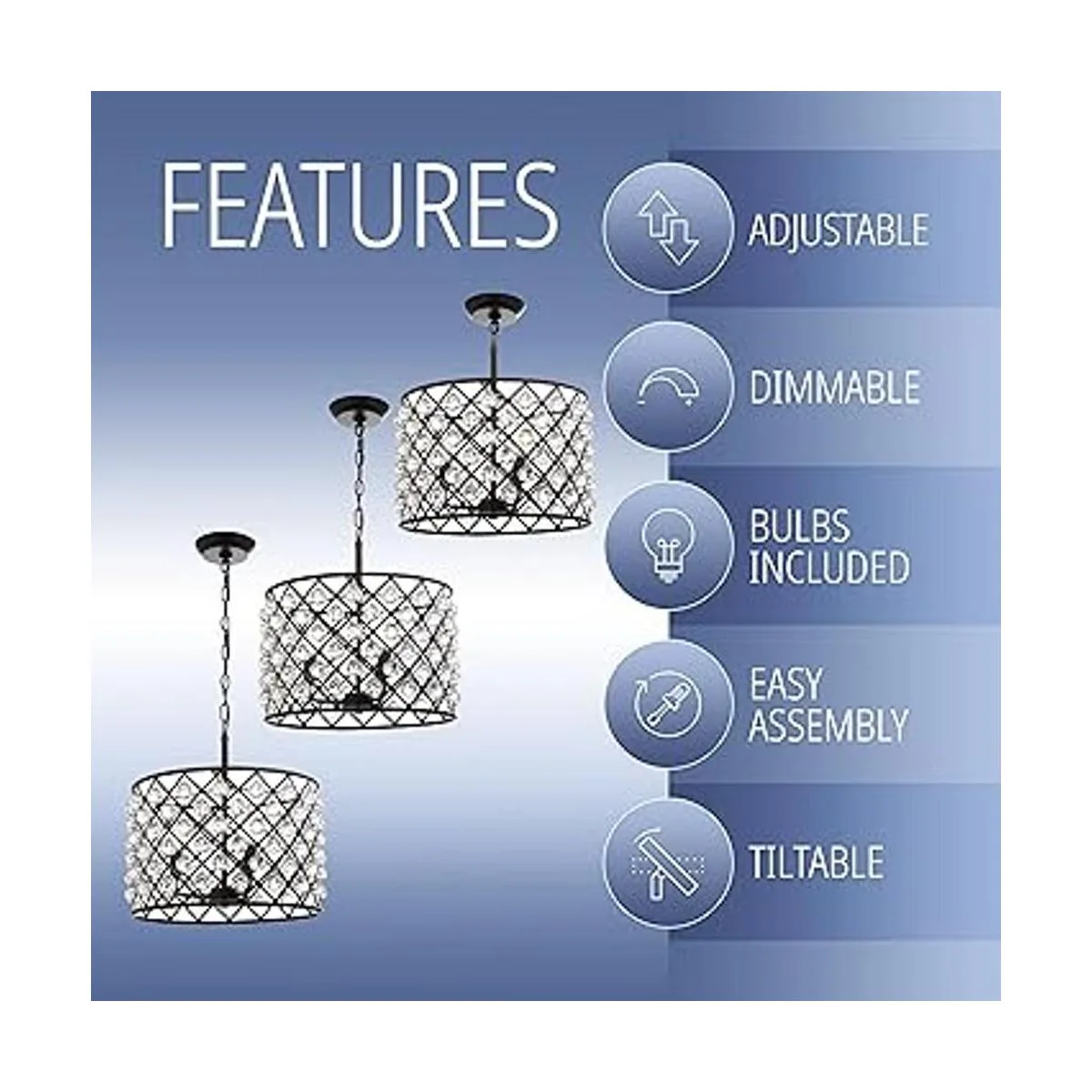 Bombillas LED de bajo consumo incluidas: bombillas LED ecológicas incluidas con cada accesorio de luz. Si tu casa tiene interruptores de atenuación compatibles con LED, simplemente reemplaza la bombilla en tu lámpara con una bombilla LED regulable. Toda nuestra iluminación está listada por ETL y cumple con las normas UL de 120 voltios para seguridad y calidad. Se recomienda instalación profesional para todas las lámparas de techo.