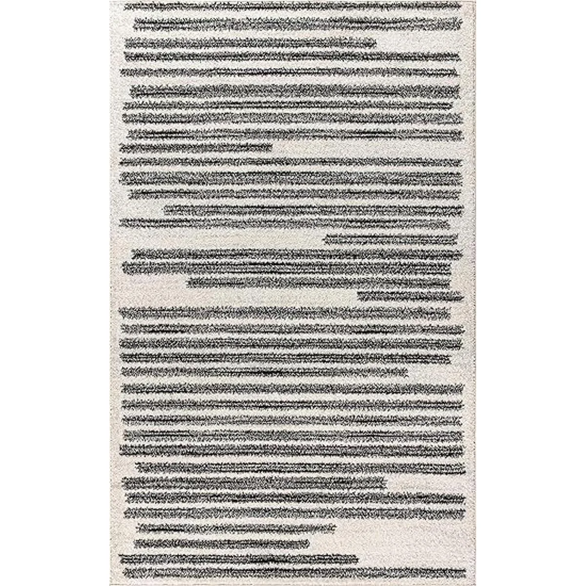 JONATHAN Y MOH207A3 Khalil Alfombra moderna de estilo campestre con rayas bereberes, estilo bohemio, minimalista, a rayas, fácil limpieza, para dormitorio, cocina, sala de estar, no se desprende, 3 x 5 pulgadas, color crema, negro