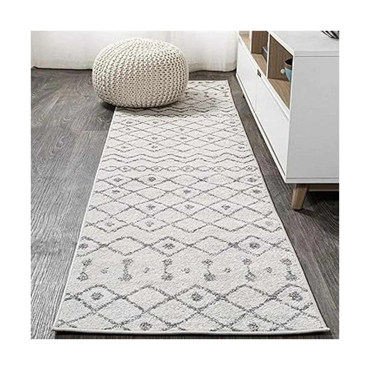JONATHAN Y MOH208B28 Aksil Alfombra marroquí Beni Souk, para interiores, estilo bohemio, minimalista, geométrica, fácil de limpiar, dormitorio, cocina, sala de estar, no se desprende, 2 pies x 8 pies, color cremagris