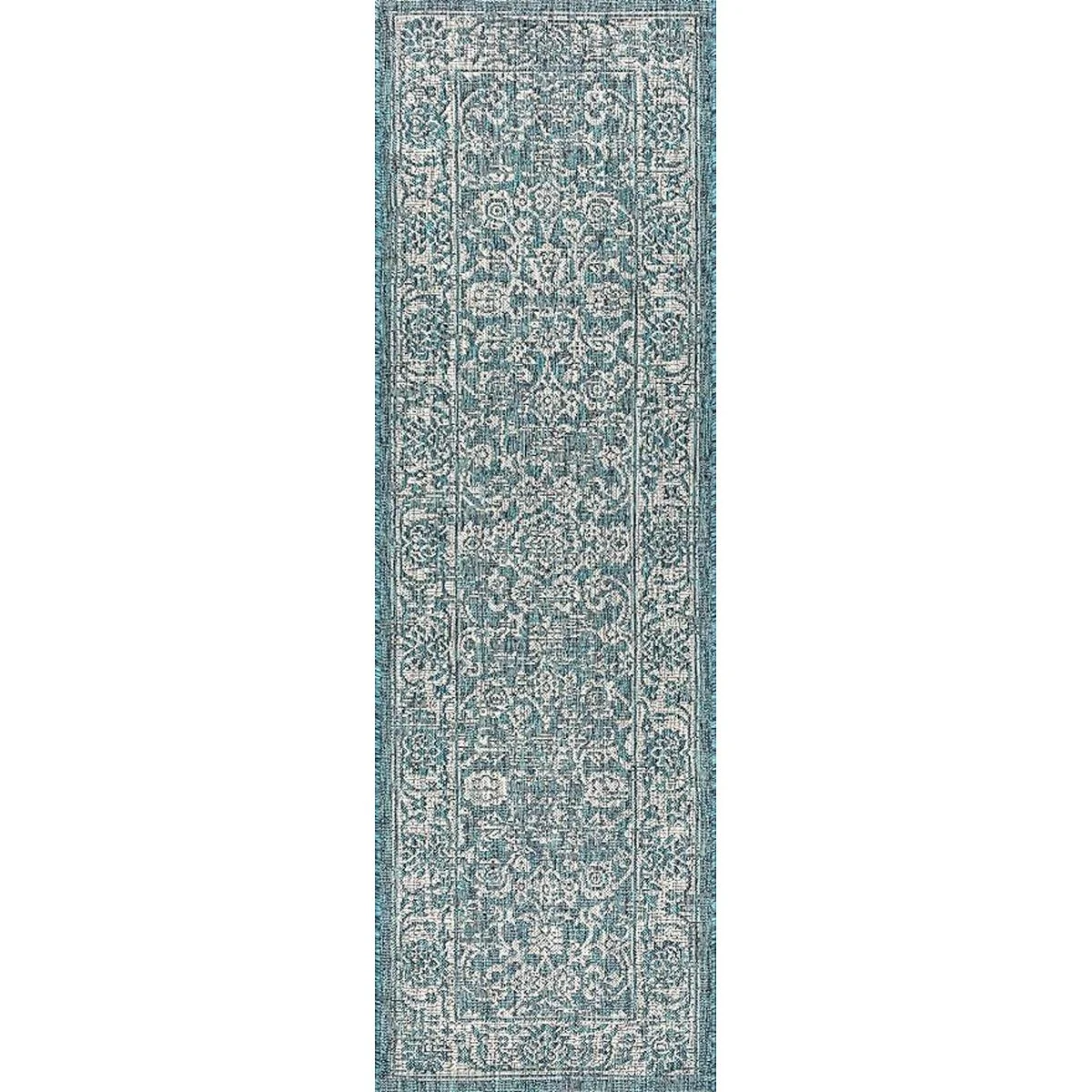 JONATHAN Y SMB100C210 Alfombra de tela bohemia texturizada floral para interiores y exteriores, estilo costero, bohemio, vintage, rústico, glamour, fácil limpieza, dormitorio, cocina, patio, no se desprende, 2 x 10 pulgadas, verde azuladogris