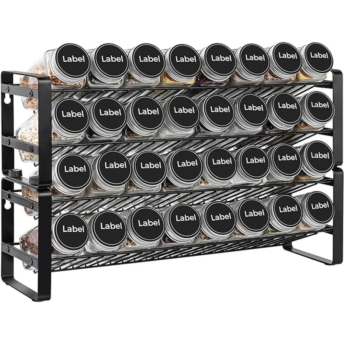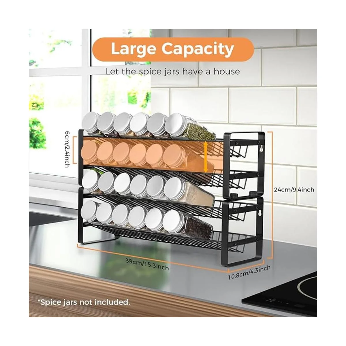 JONYJ Organizador de especias para gabinete, organizador de especias de 4 niveles, organizador de condimentos expandible, soporte de pared apilable, estante de especias de hierro esmerilado negro para cajón
