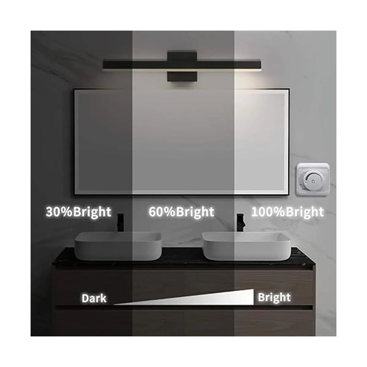 Regulable: rango de atenuación del 5 al 100, las luces LED de tocador son compatibles con la mayoría de los reguladores LED triac domésticos para un funcionamiento suave y sin parpadeo.