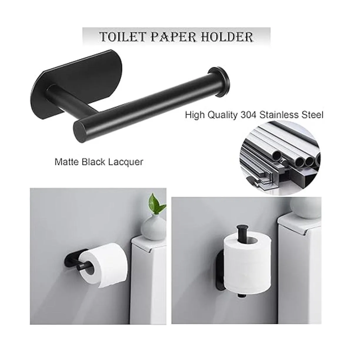 JOPOFI Soporte de papel higiénico autoadhesivo Soporte de papel higiénico negro mate para baño y cocina, acero inoxidable SUS304